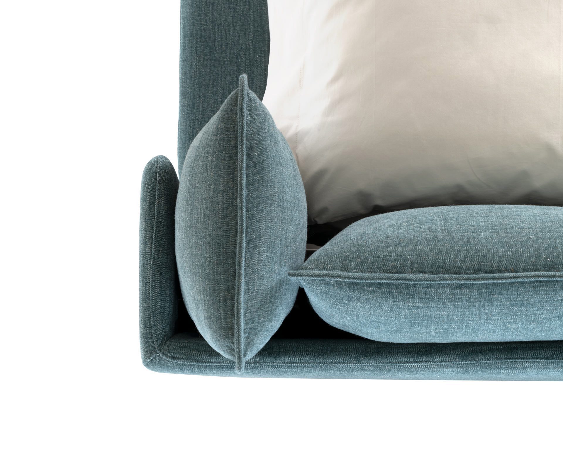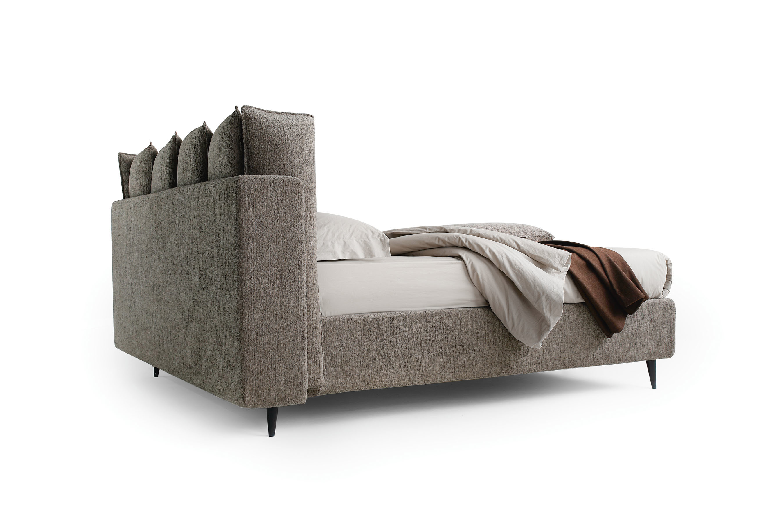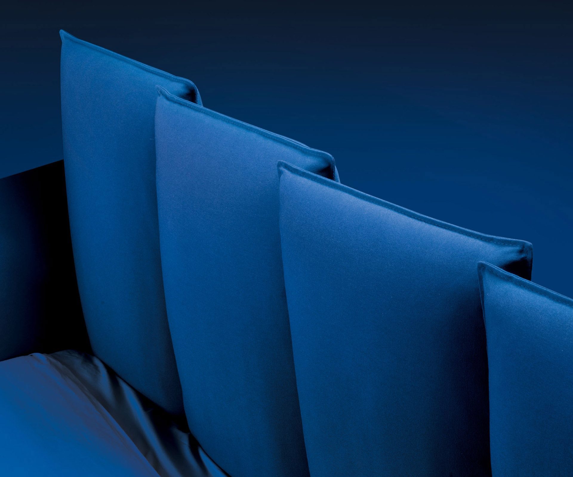 La testata, ispirata alla leggerezza e alla creatività, permette di personalizzare l'aspetto del letto grazie ai cuscini rimovibili e alle numerose varianti di rivestimento. Ogni dettaglio è studiato per creare un ambiente accogliente e di grande personalità, trasformando la camera da letto in uno spazio dinamico e raffinato.
