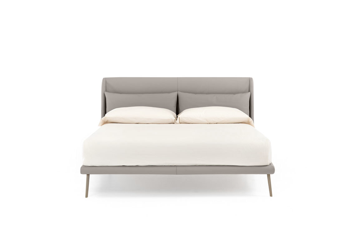 Il giroletto imbottito, con altezza H27, crea una base solida ma visivamente leggera, enfatizzata da proporzioni armoniose e da una silhouette estremamente pulita. L’effetto complessivo è un letto che trasmette comfort immediato e una sensazione di intimità, capace di valorizzare qualsiasi camera da letto moderna.