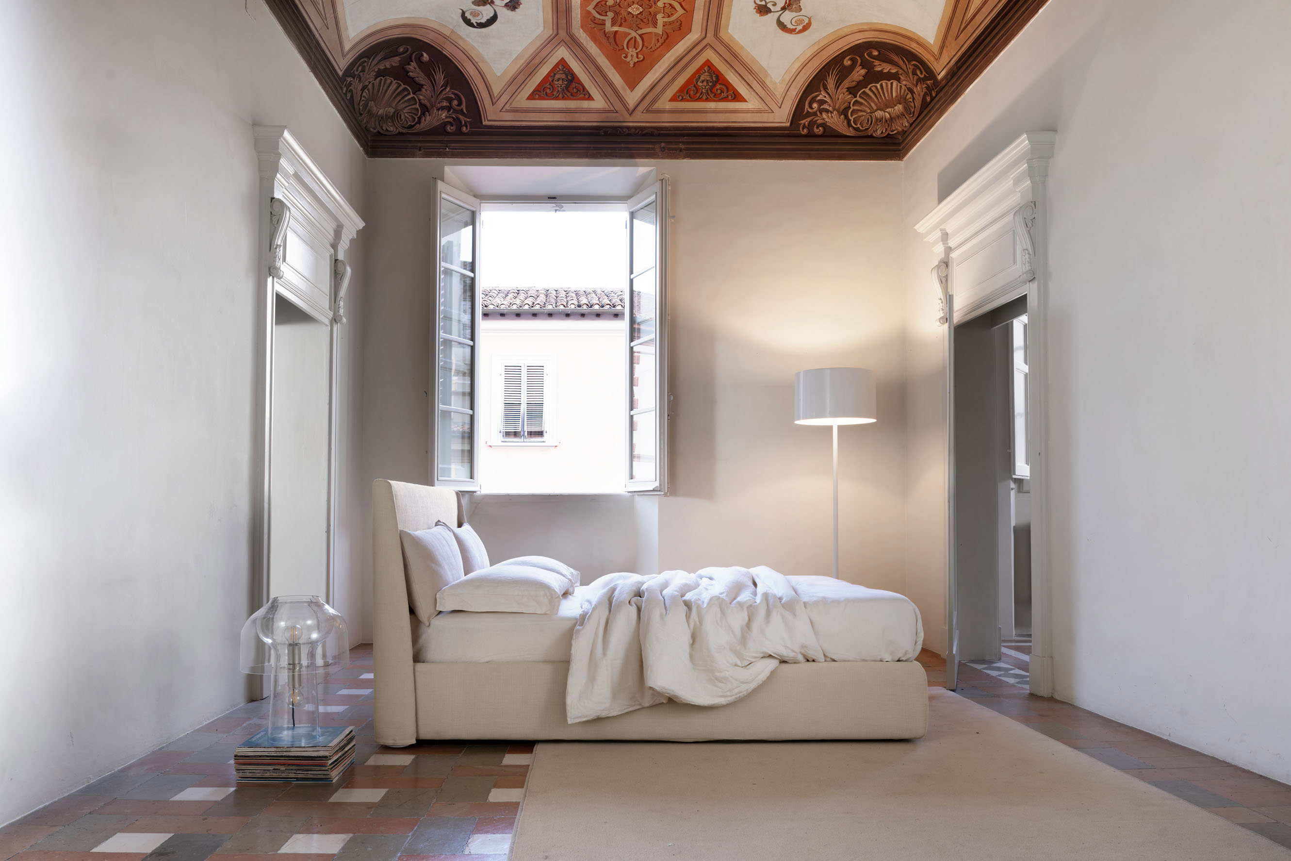 La disponibilità di numerose finiture – tessuti tecnici, naturali, texture morbide, velluto, ecopelle o pelle – consente di personalizzare il letto secondo il proprio stile.