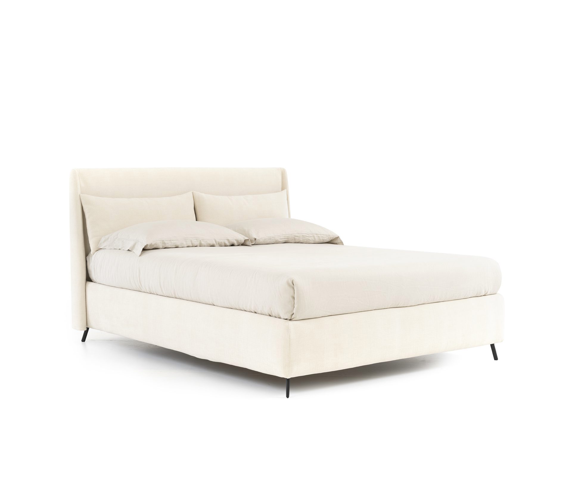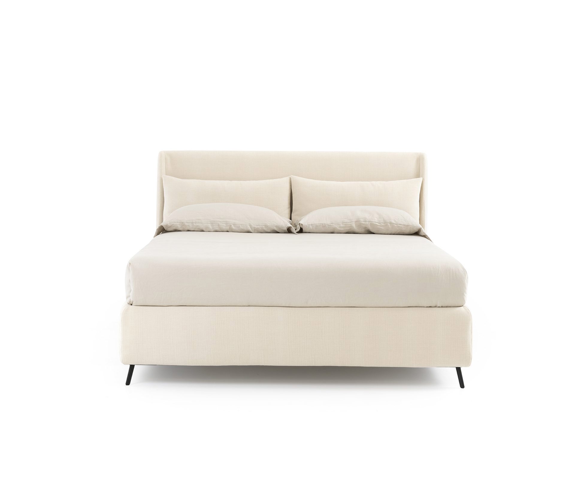 Il giroletto imbottito, con altezza H27, crea una base solida ma visivamente leggera, enfatizzata da proporzioni armoniose e da una silhouette estremamente pulita. L’effetto complessivo è un letto che trasmette comfort immediato e una sensazione di intimità, capace di valorizzare qualsiasi camera da letto moderna.