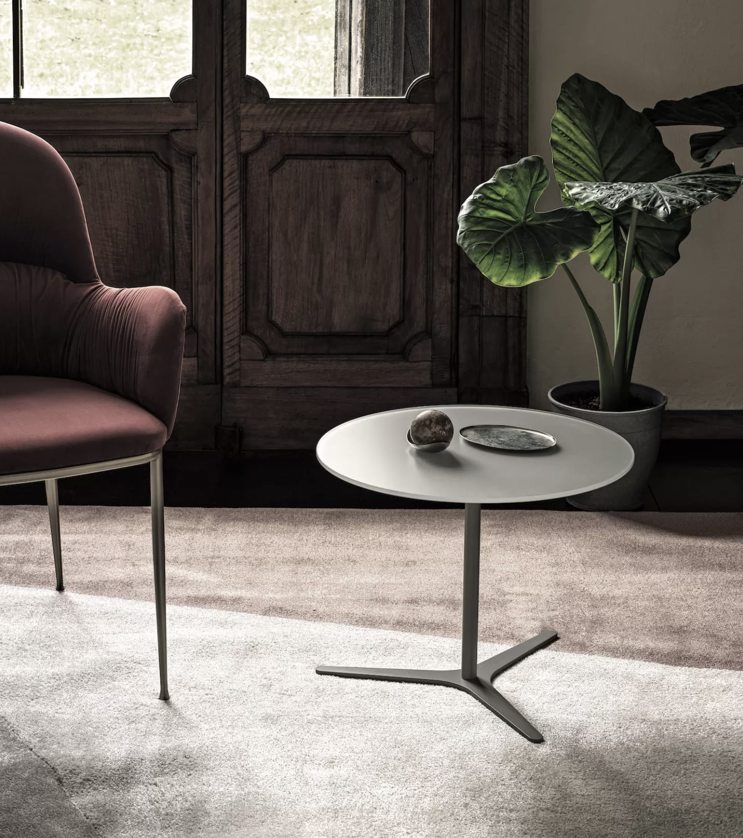 Il tavolino Elica di Bontempi Casa unisce design essenziale e leggerezza visiva.