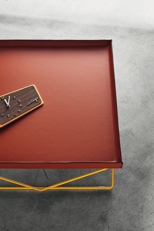 Design moderno e raffinatezza made in Italy: il Tavolino Flexus unisce struttura in acciaio laccato disponibile in vari colori e piano in cuoio elegante e resistente. Perfetto come tavolino da salotto o complemento d’arredo, porta stile e funzionalità in ogni ambiente.