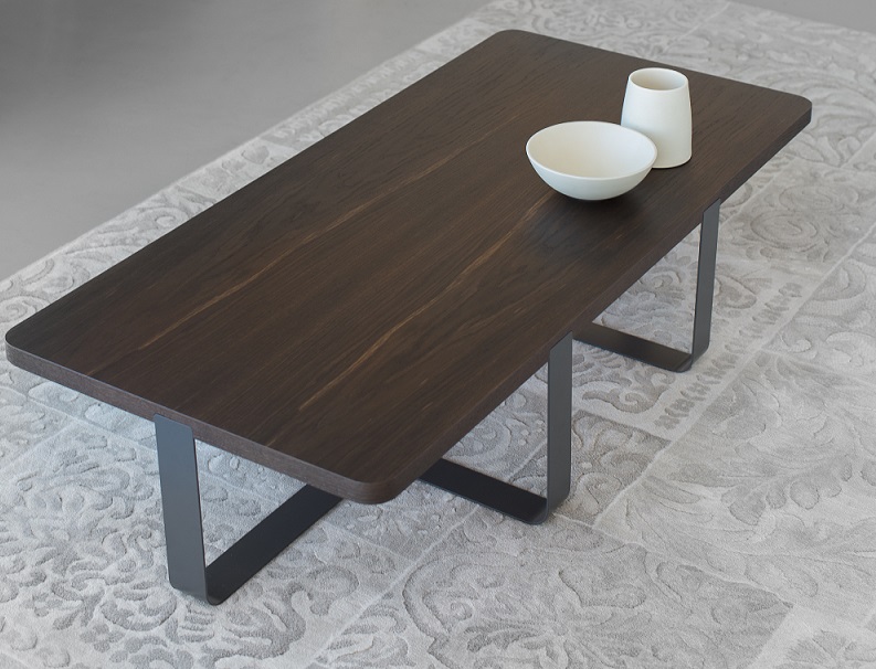 Tavolino rettangolare con top in legno impiallacciato rovere fumè mm30