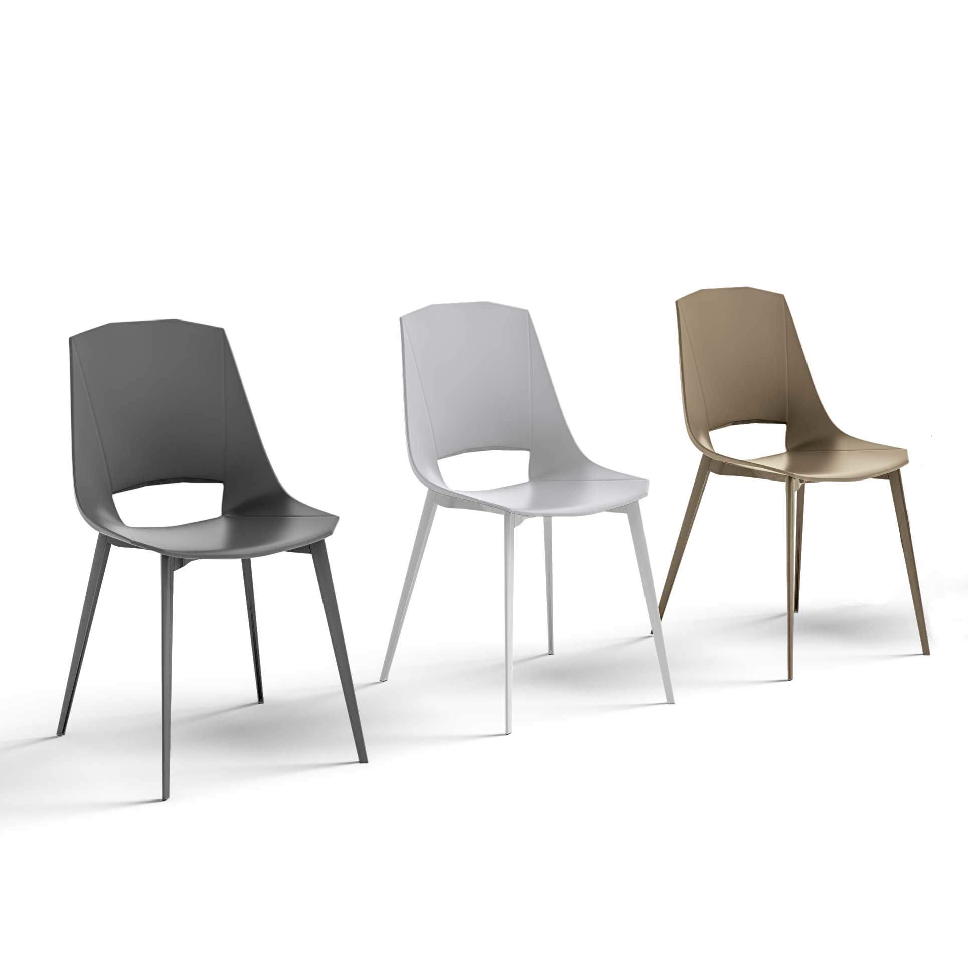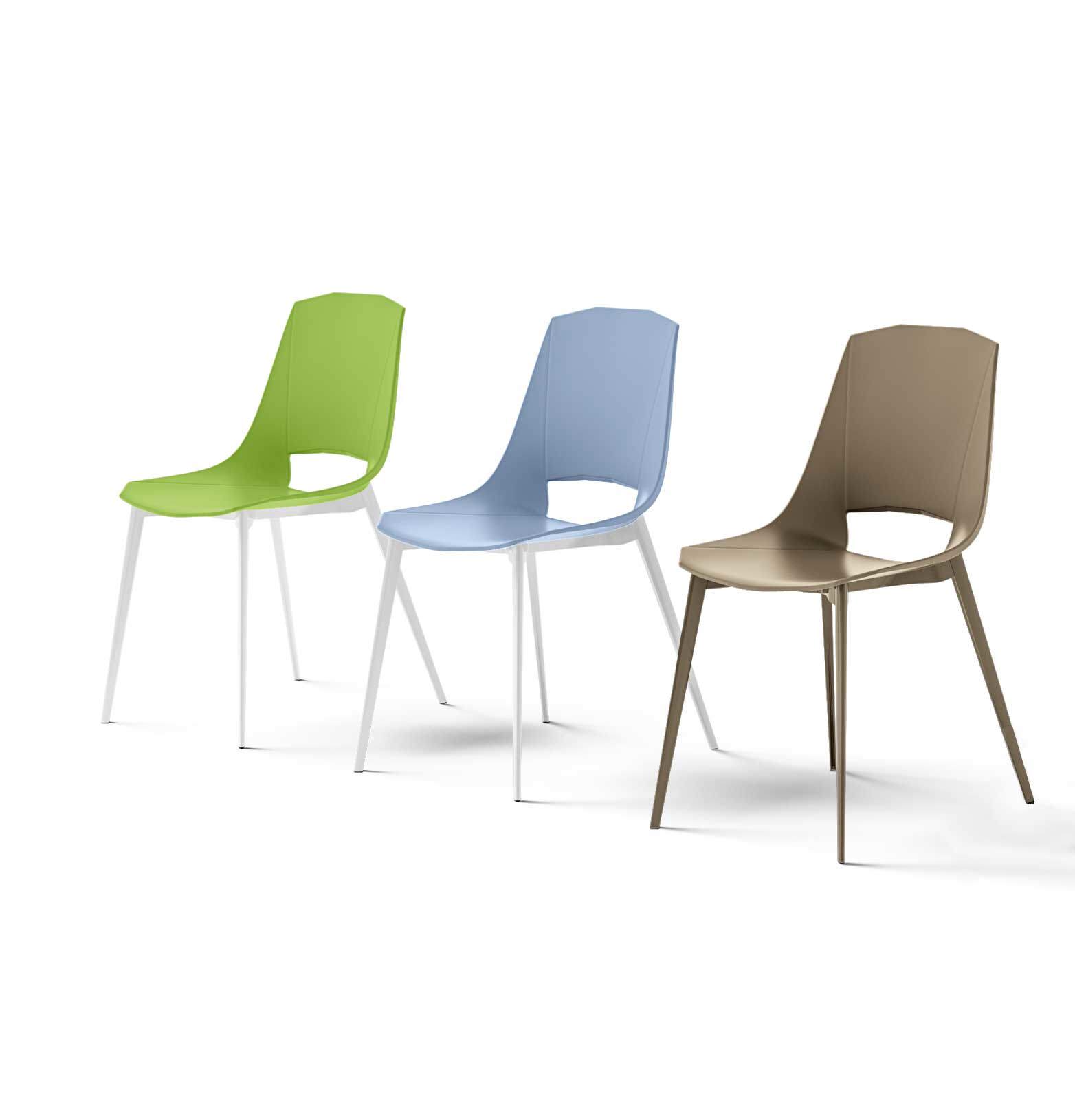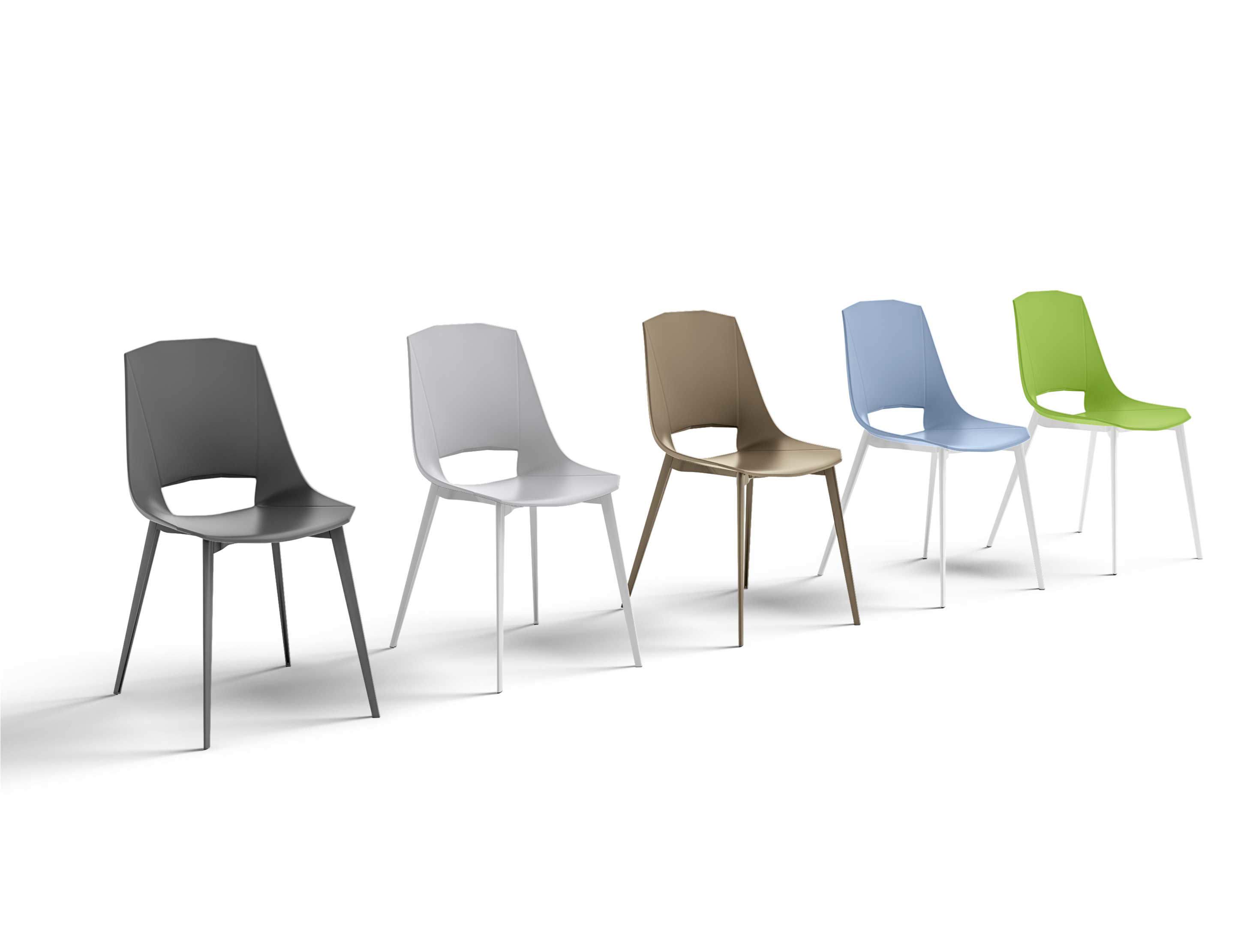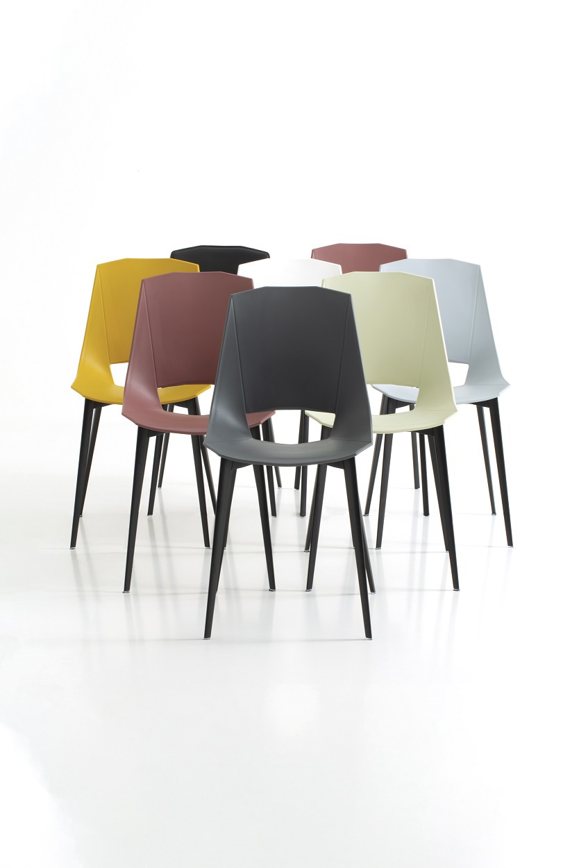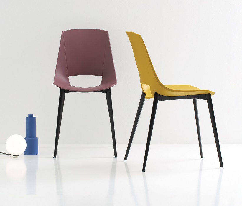 Structure characterized by geometric lines completed by segments carved on the shell, recreating a large and very comfortable seat. The rigorous concept of straight lines harmonizes perfectly with the design of the legs. Versatile and eclectic chair, thanks to the colors with which it is proposed, it will make your rooms lively and carefree. Ideal for your living room or kitchen, Eva is a chair which, thanks to the variants, can be easily inserted into many living situations.