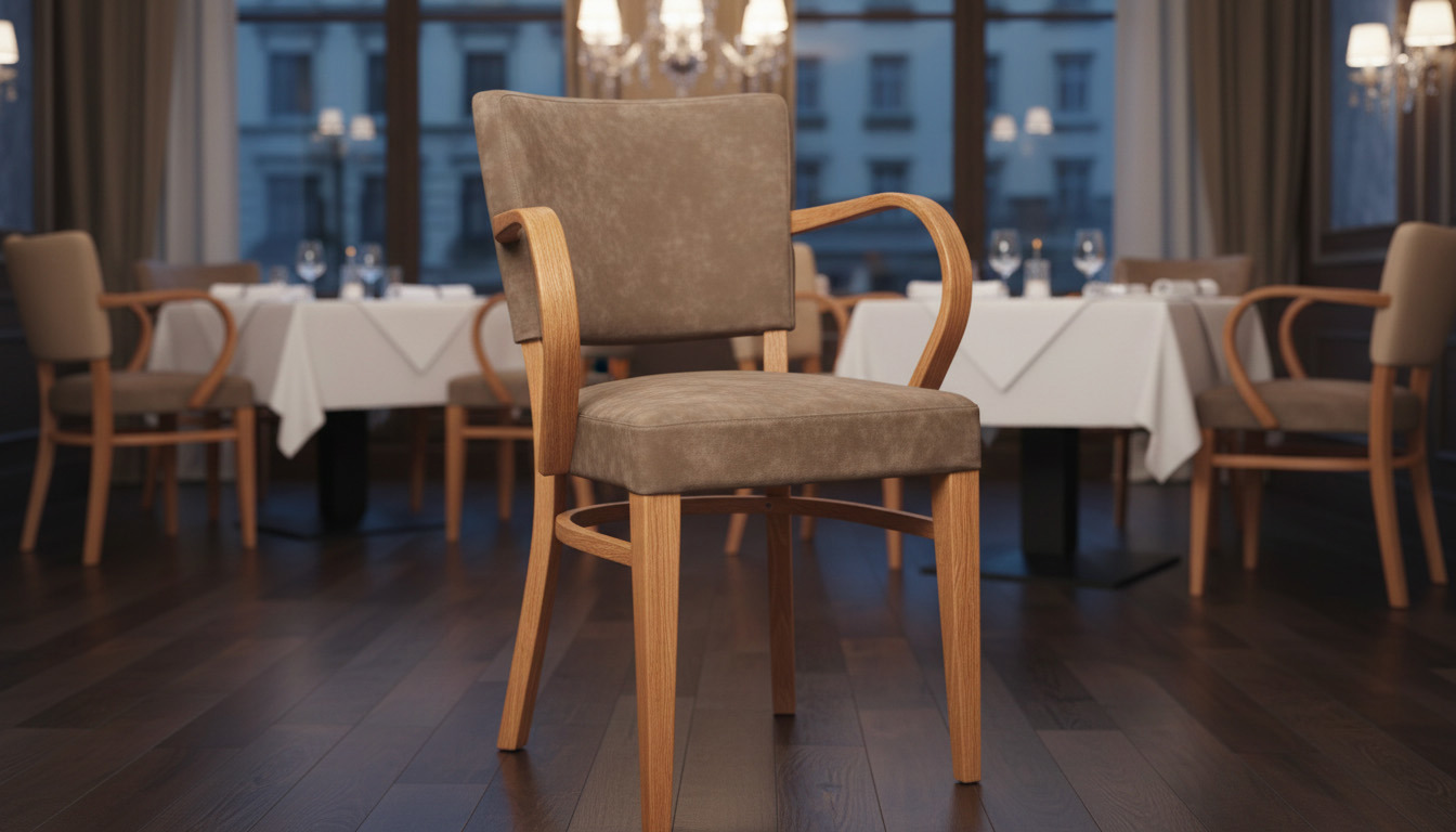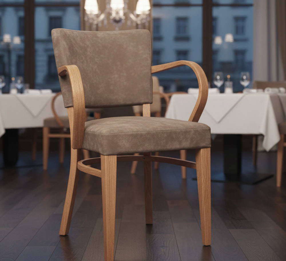 Made of beech wood stained in various colors, with upholstered and upholstered seat and back