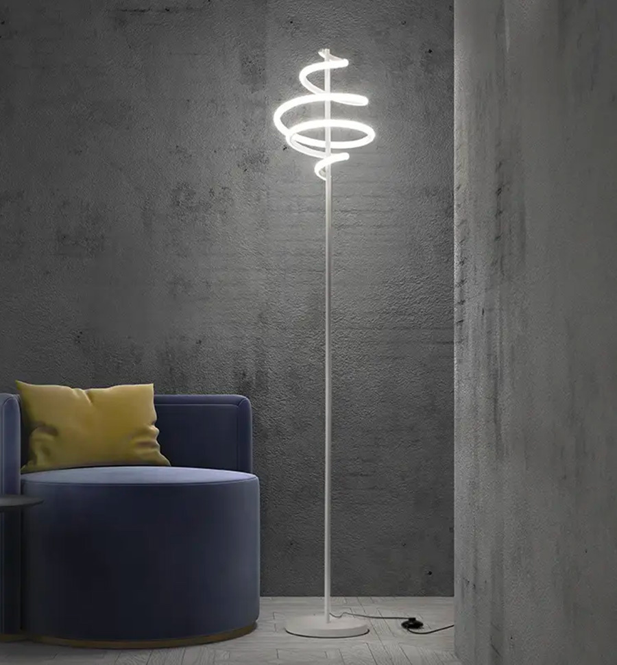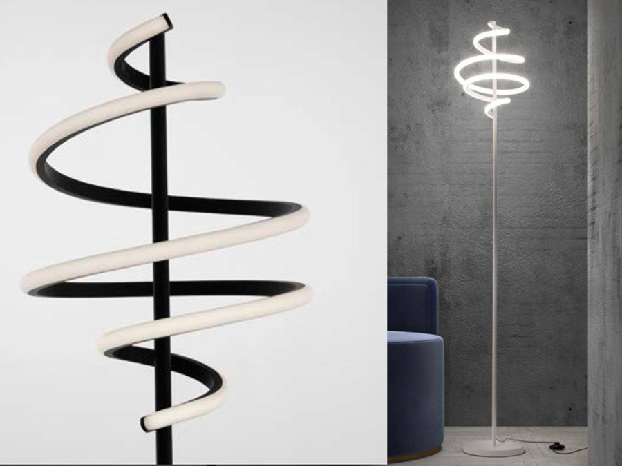 Let yourself be embraced by the luminous elegance of the BOUCLE PT180 floor lamp, which combines sculptural design with advanced functionality. Its slender metal structure rises gracefully into a luminous spiral, softened and continuous thanks to the white silicone diffuser insert, which ensures uniform and relaxing light. The BOUCLE PT180 is perfect for enhancing reading corners, modern living rooms, or refined studies and fits perfectly in both minimalist interiors and more sophisticated spaces.