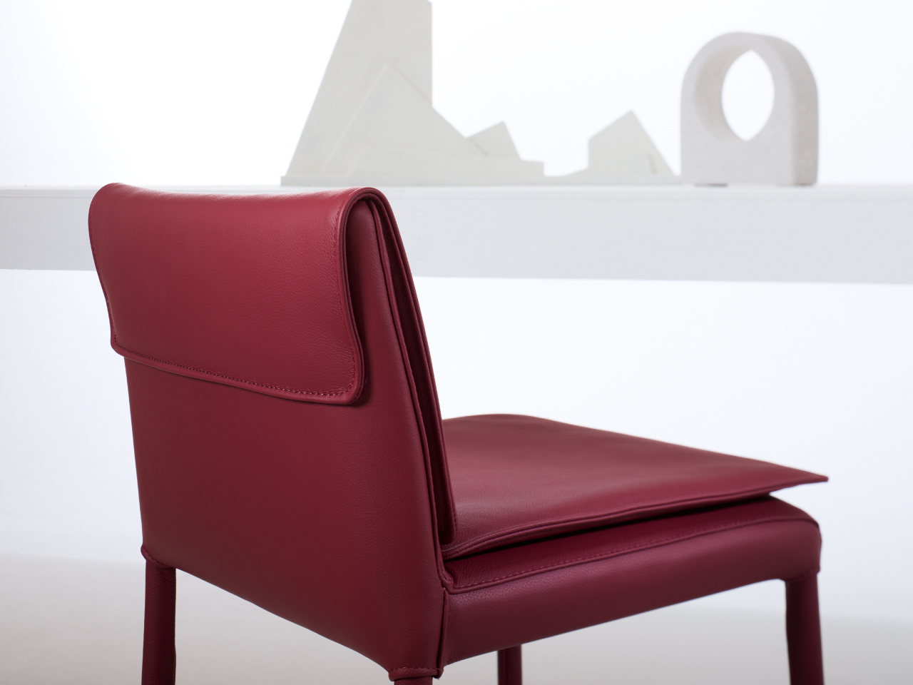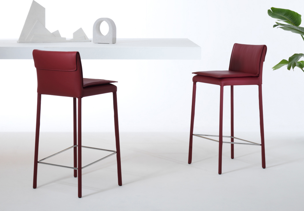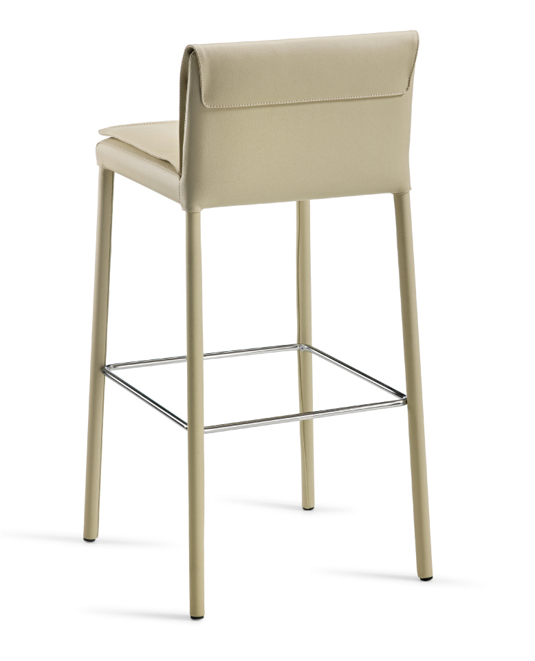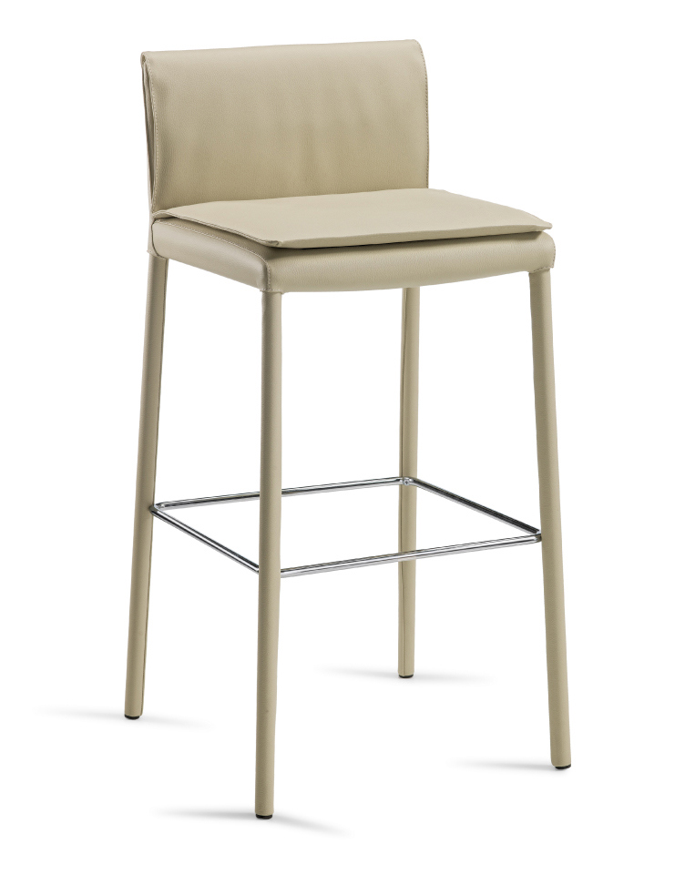 Stool with a simple but elegant line with structure in painted steel tube, completely covered