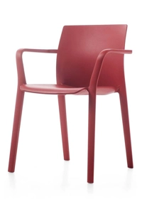 Polipropilene e resina: Le sedie in resina colorate e in polipropilene sono perfette per l'esterno grazie alla tecnologia del monostampo con pigmenti integrati. Questa tecnica garantisce una resistenza ai raggi UV superiore e previene lo sbiadimento e la fragilizzazione superficiale nel tempo. Brand come Colico mostrano la versatilità del monostampo, offrendo linee in versione lucida, trasparente e opaca.