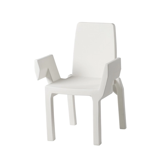 La sua linea è squadrata, con una seduta larga e comodi braccioli che assicurano uno spazio avvolgente e comfort della seduta. Solida e funzionale ha la particolarità di essere impilabile.