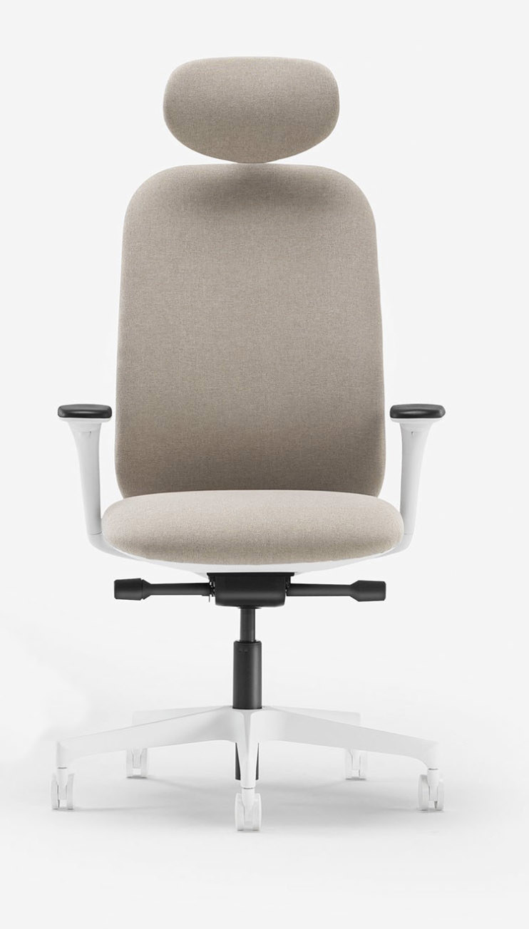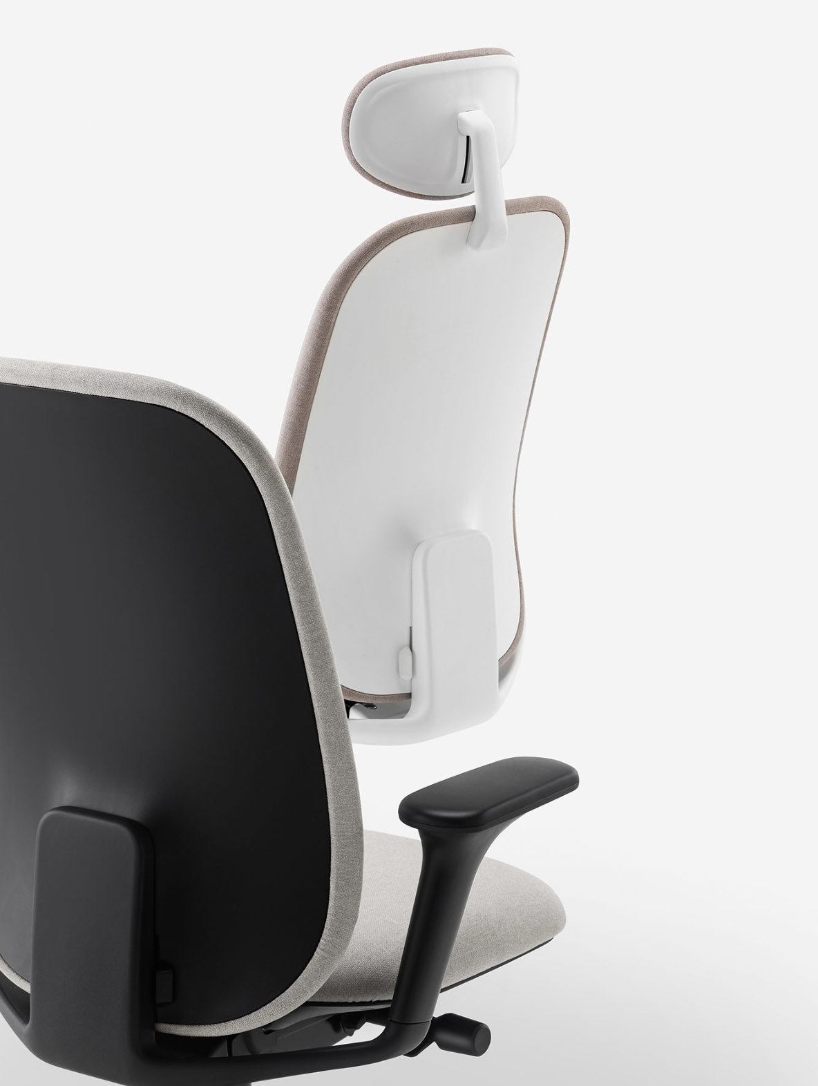 • Schienale alto curvato, disponibile nelle versioni imbottita o in rete, che avvolge la schiena in modo armonioso.