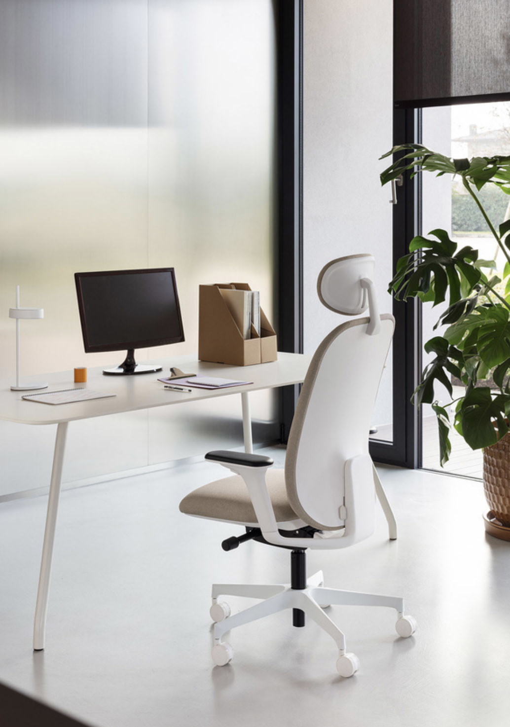 La linea fluida dello schienale, il supporto lombare integrato e i braccioli regolabili in 4D ne fanno un modello ideale per chi lavora molte ore seduto e cerca comfort senza rinunciare allo stile.