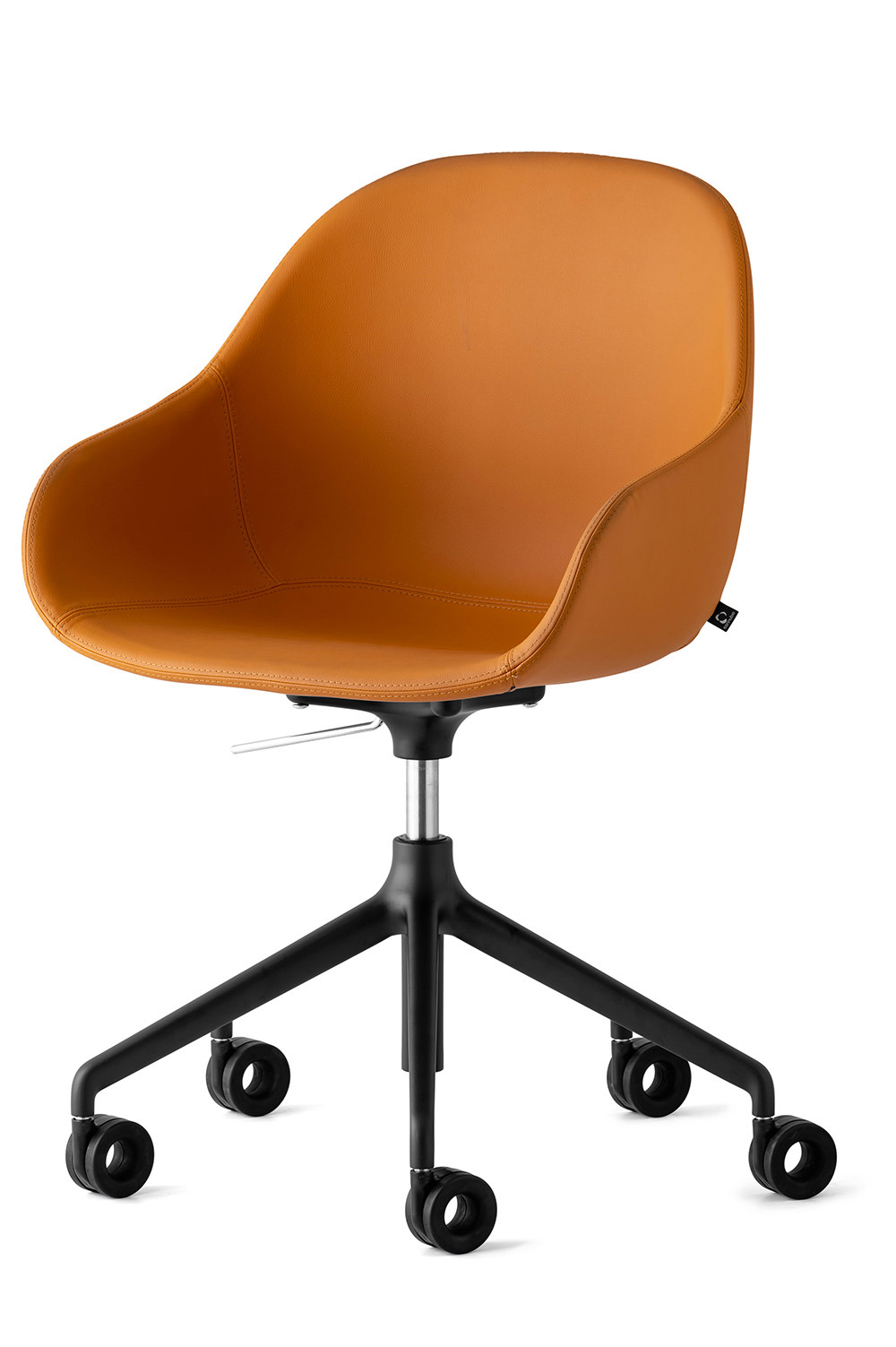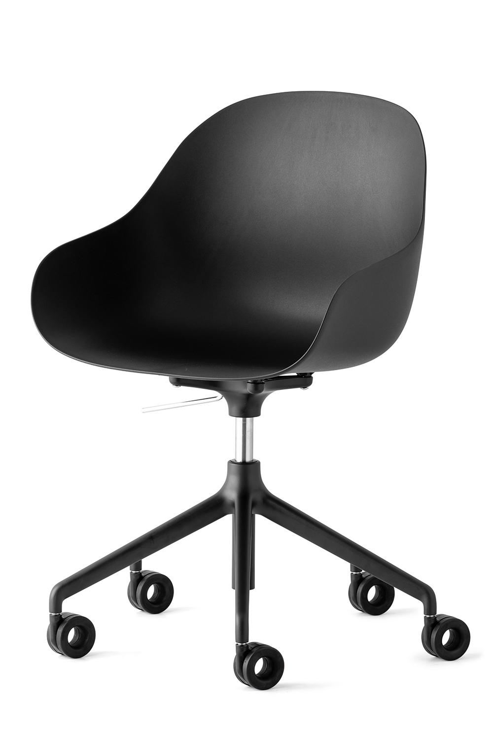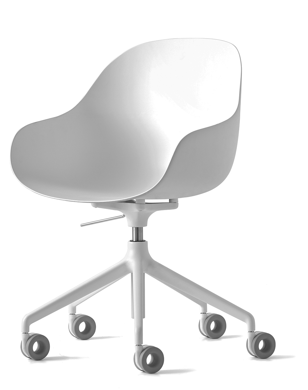 In questa versione è dotata di base a 5 razze in alluminio con rotelle in gomma morbida adatte anche per parquet, e garantisce massima stabilità, libertà di movimento e un’estetica contemporanea.
