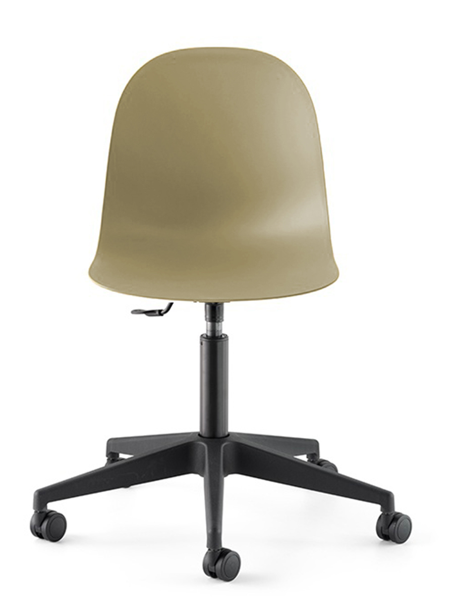 In questa versione è dotata di base a 5 razze in nylon con rotelle in gomma morbida adatte anche per parquet, e garantisce massima stabilità, libertà di movimento e un’estetica contemporanea.