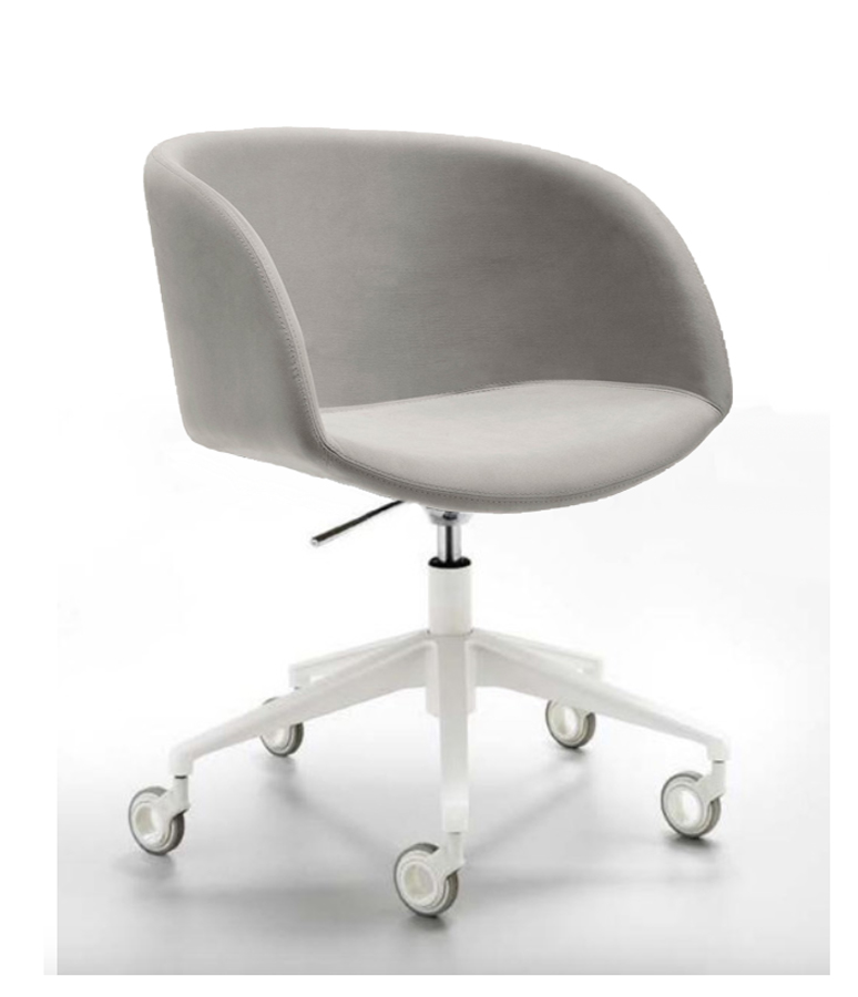 La versione con alzata gas è dotata di ruote gommate per parquet, che permettono una mobilità fluida senza compromettere stabilità e sicurezza. La struttura è realizzata in fusione di alluminio cromato o verniciato, mentre la seduta è personalizzabile con rivestimenti in pelle, ecopelle o tessuto, offrendo infinite possibilità di combinazioni in base allo stile dell’ambiente.