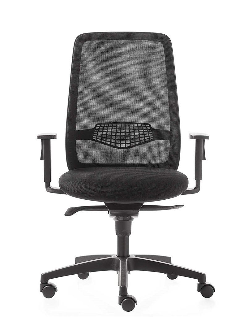 È dotata di supporto lombare regolabile e di meccanismo syncron, una soluzione tecnica che regola l’inclinazione dello schienale e del sedile in completa sintonia con una sola leva o tasto.