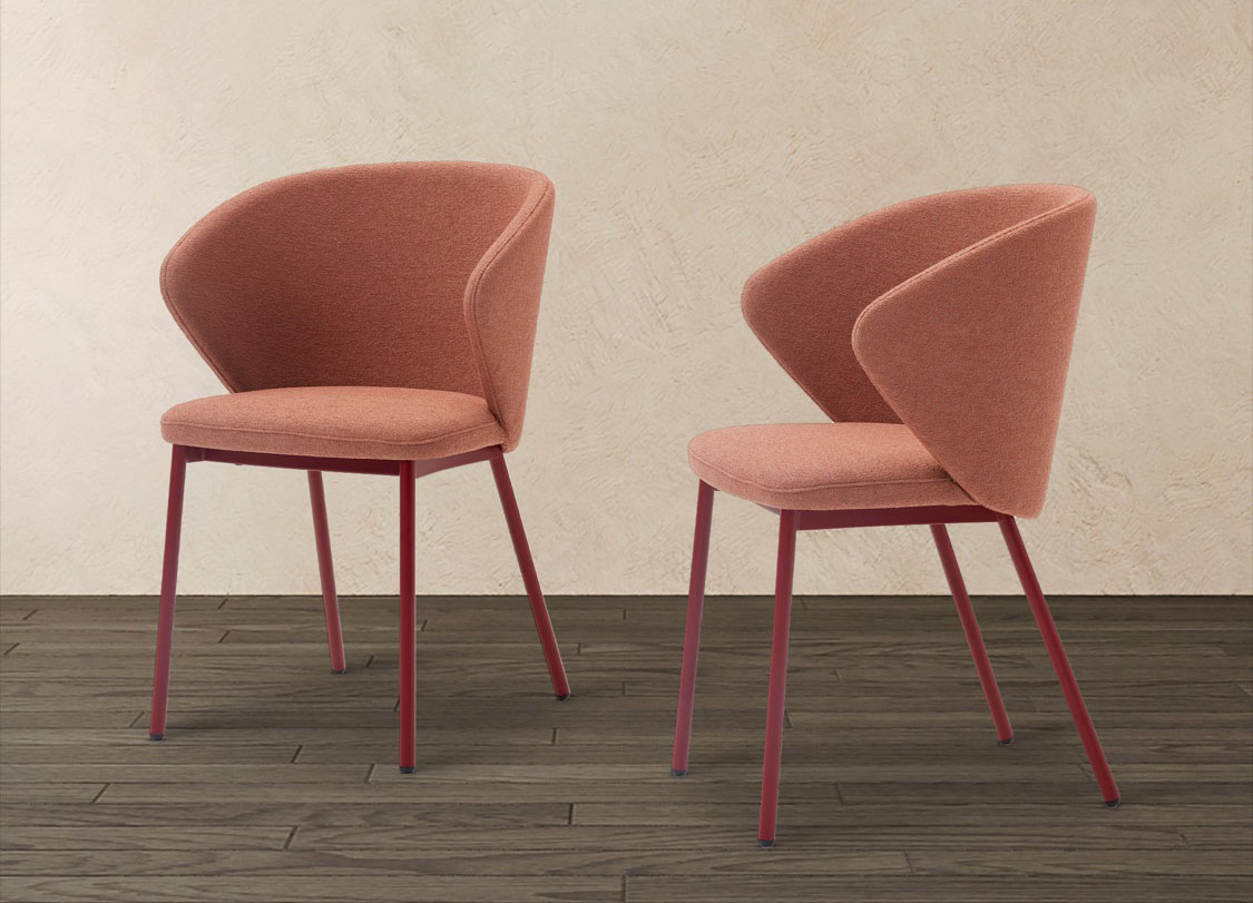 Contrasti e abbinamenti tono su tono di materiali e tessuti la fanno da padrona, la struttura in metallo si abbina armoniosamente con il materico dei rivestimenti, rendendo particolare ed unica questa sedia e tutti gli elementi che completano questa collezione.