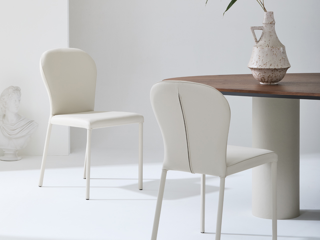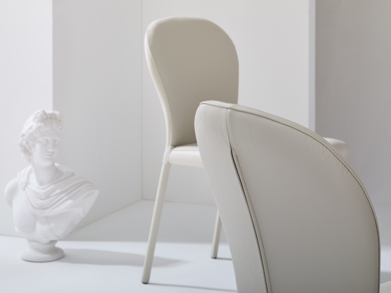 Robusta, ma leggera è una sedia contemporanea e confortevole dalle diverse possibilità di rivestimenti che la rendono adattabile in tantissime situazioni.