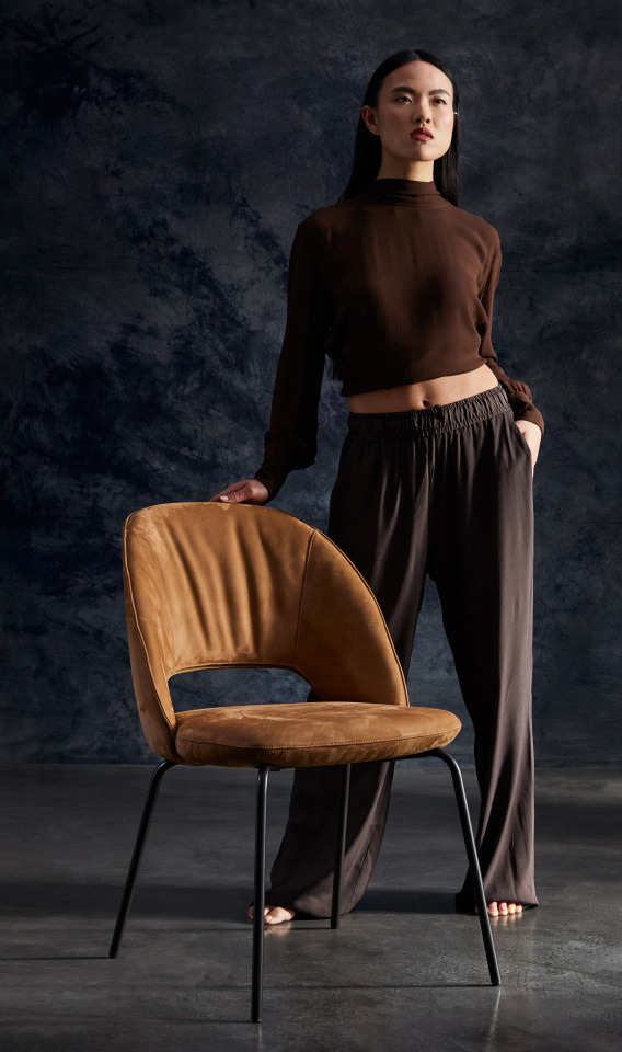Unisce eleganza contemporanea, comfort e qualità artigianale italiana. Caratterizzata da linee morbide e proporzioni equilibrate, è la scelta ideale per arredare con stile la zona pranzo, il soggiorno o spazi contract come sale riunioni e lounge.