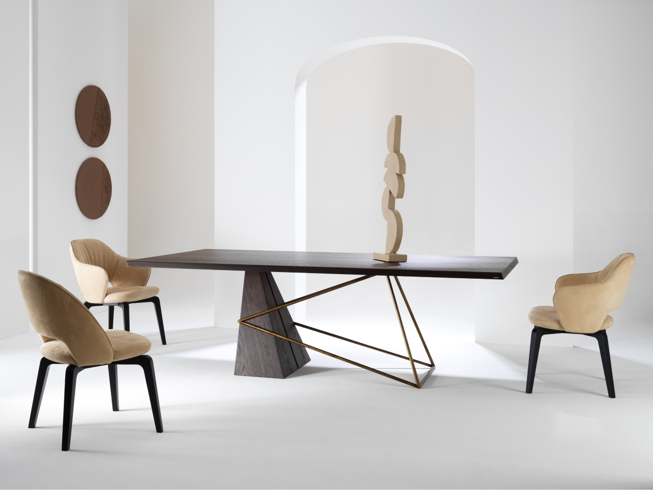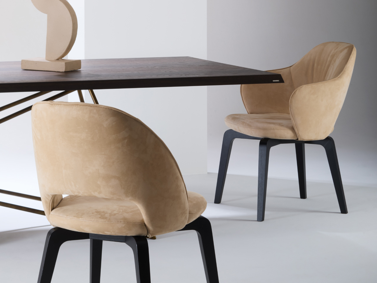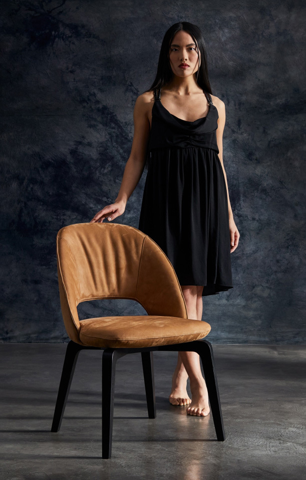 Unisce eleganza contemporanea, comfort e qualità artigianale italiana. Caratterizzata da linee morbide e proporzioni equilibrate, è la scelta ideale per arredare con stile la zona pranzo, il soggiorno o spazi contract come sale riunioni e lounge.