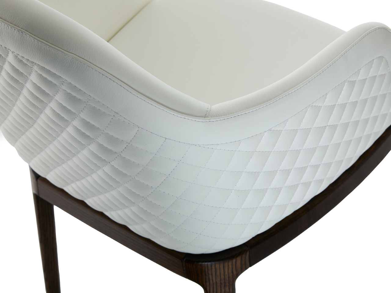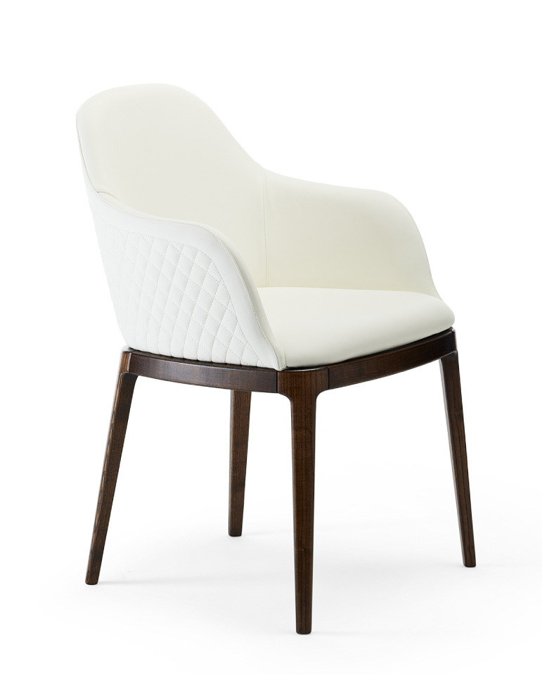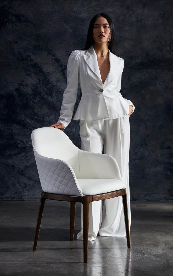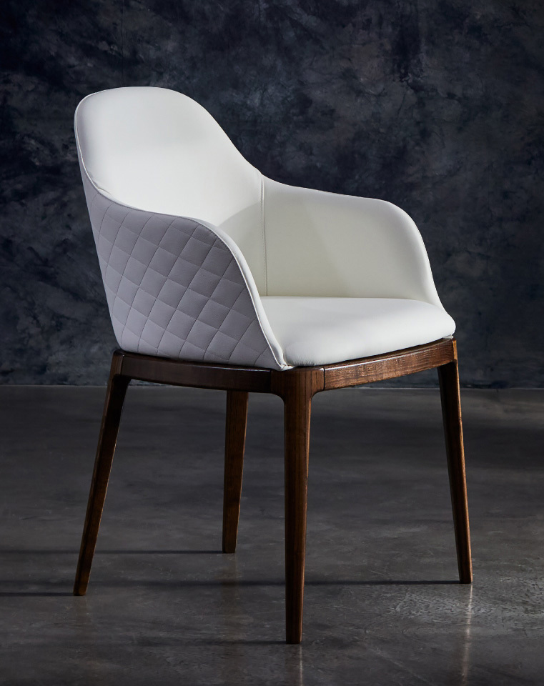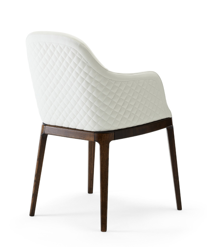Perfetta per la zona pranzo, lo studio o un elegante contesto contract, la sedia coniuga comfort e design grazie allo schienale ergonomico, alla seduta imbottita e alle proporzioni armoniose.