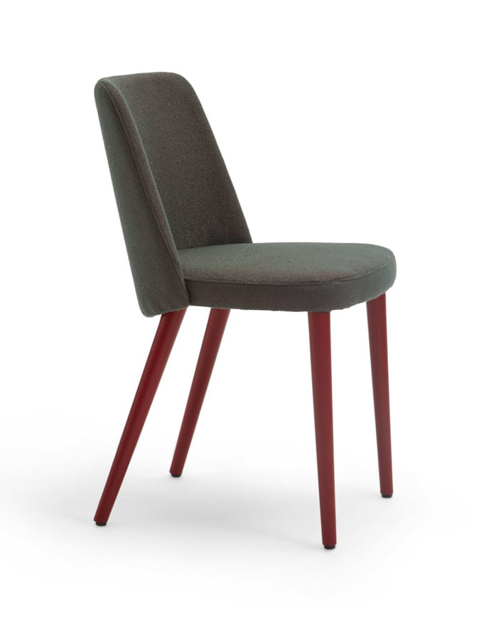 Contrasti e abbinamenti tono su tono di materiali e tessuti la fanno da padrona, il calore del legno si abbina armoniosamente con il materico dei rivestimenti, rendendo particolare ed unica questa sedia e tutti gli elementi che completano questa collezione.