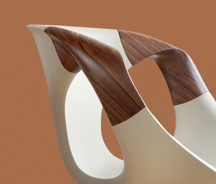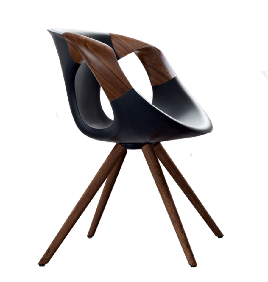 La particolarità di UP in questa versione è il bracciolo in rovere o in noce canaletto massello in tinta con la struttura della sedia