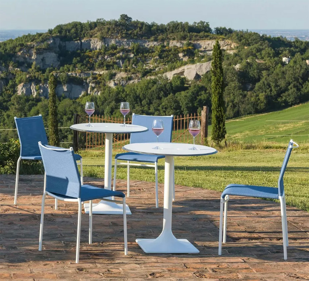 Texplast è un materiale idrorepellente, termoresistente e durevole, pensato per mantenere la sedia bella e funzionale anche sotto sole e pioggia.
