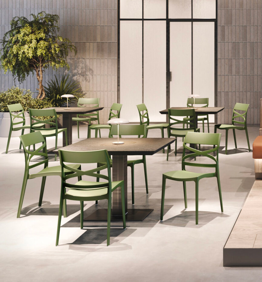 La sedia FLOW è impilabile, consentendo un facile stoccaggio e una gestione ottimale dello spazio. Inoltre, grazie alla sua resistenza ai raggi UV e all'umidità, è ideale anche per l'uso all'aperto, senza compromettere la qualità nel tempo. È disponibile in una vasta gamma di colori, che permette di personalizzare l'ambiente in base ai tuoi gusti e alle tue necessità.