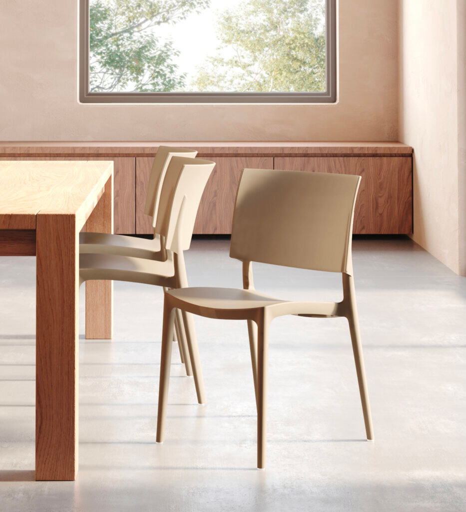La sedia SHARP è impilabile, consentendo un facile stoccaggio e una gestione ottimale dello spazio. Inoltre, grazie alla sua resistenza ai raggi UV e all'umidità, è ideale anche per l'uso all'aperto, senza compromettere la qualità nel tempo. È disponibile in una vasta gamma di colori, che permette di personalizzare l'ambiente in base ai tuoi gusti e alle tue necessità.