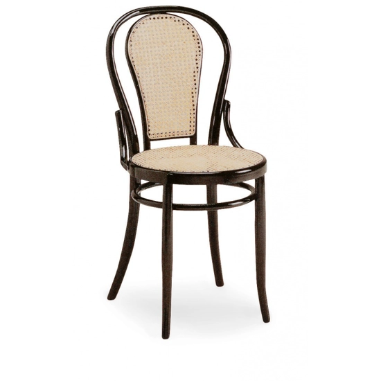 Sedia in legno di faggio curvato in vari colori, con seduta e schienale in paglia di Vienna naturale o imbottito o rivestito in tessuto.