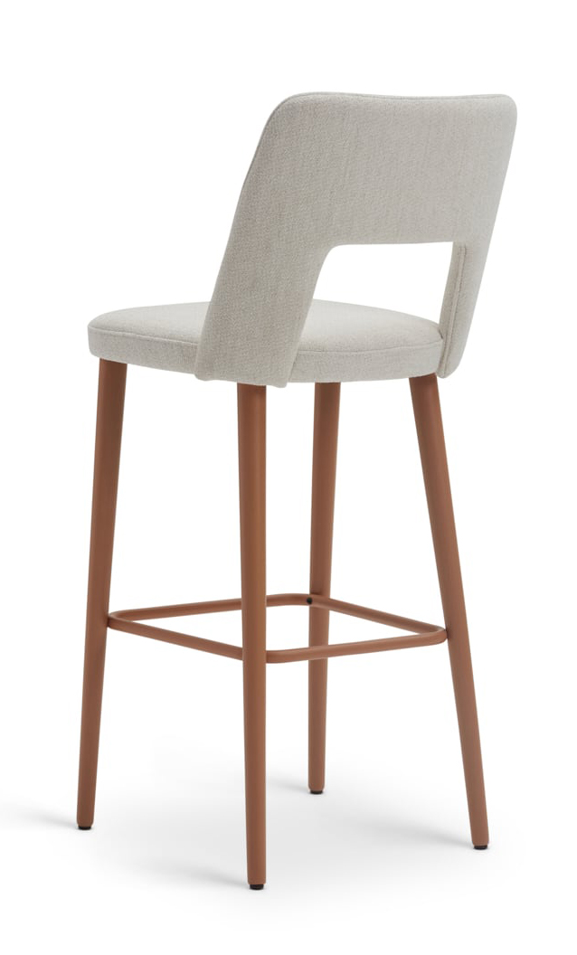 Contrasti e abbinamenti tono su tono di materiali e tessuti la fanno da padrona, il calore del legno si abbina armoniosamente con il materico dei rivestimenti, rendendo particolare ed unico questo sgabello e tutti gli elementi che completano questa collezione.