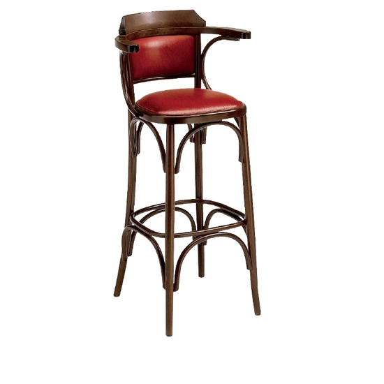 Sgabello con altezza di 80 cm in legno di faggio curvato in vari colori, con seduta imbottito.