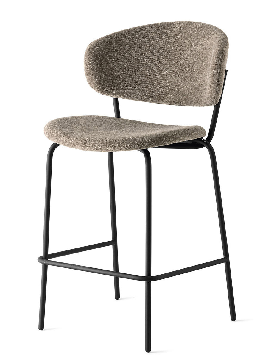 La seduta e lo schienale, entrambi imbottiti e rivestiti in tessuto, garantiscono comfort e praticità. La struttura in tubolare d’acciaio rinforzato, pensata per un uso intenso, è disponibile in tre finiture opache e moderne.