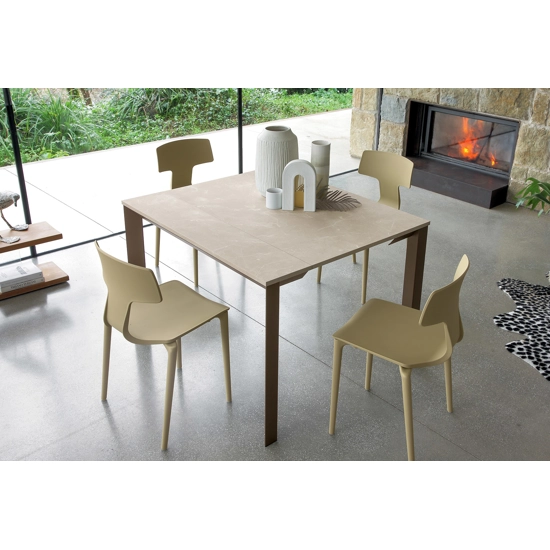 Nella versione con piano in Ceramica Laminam® le allunghe sono in MDF laccato in tinta col piano.