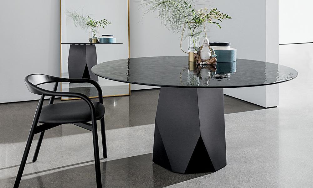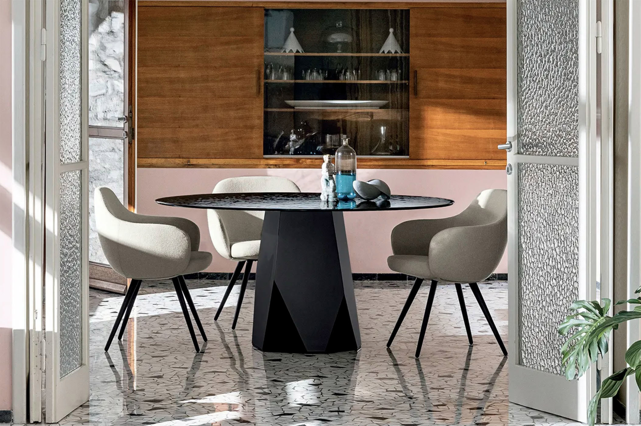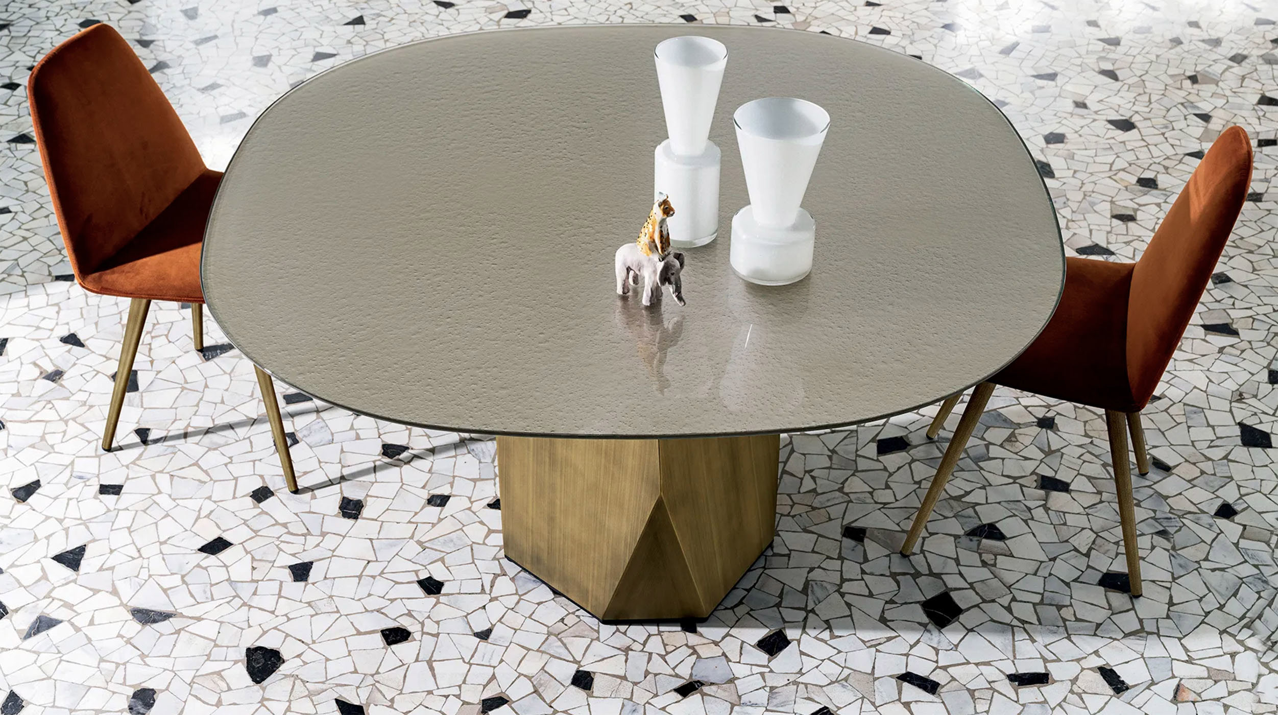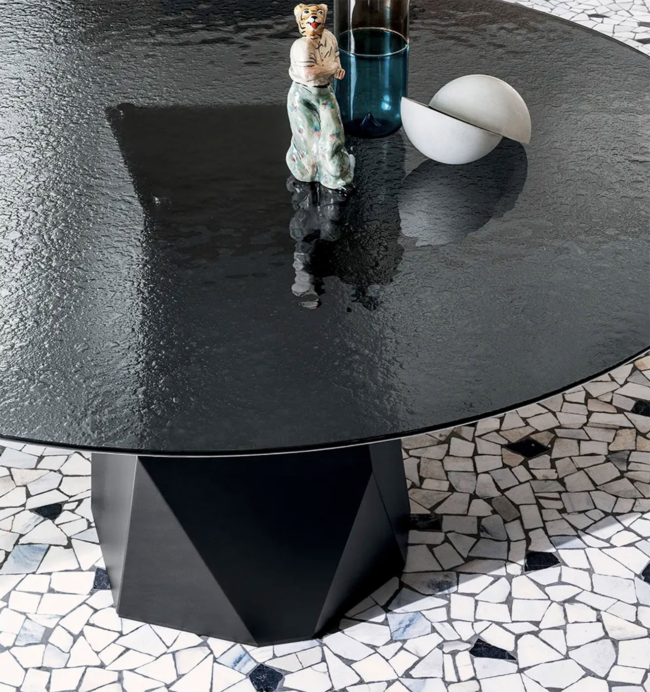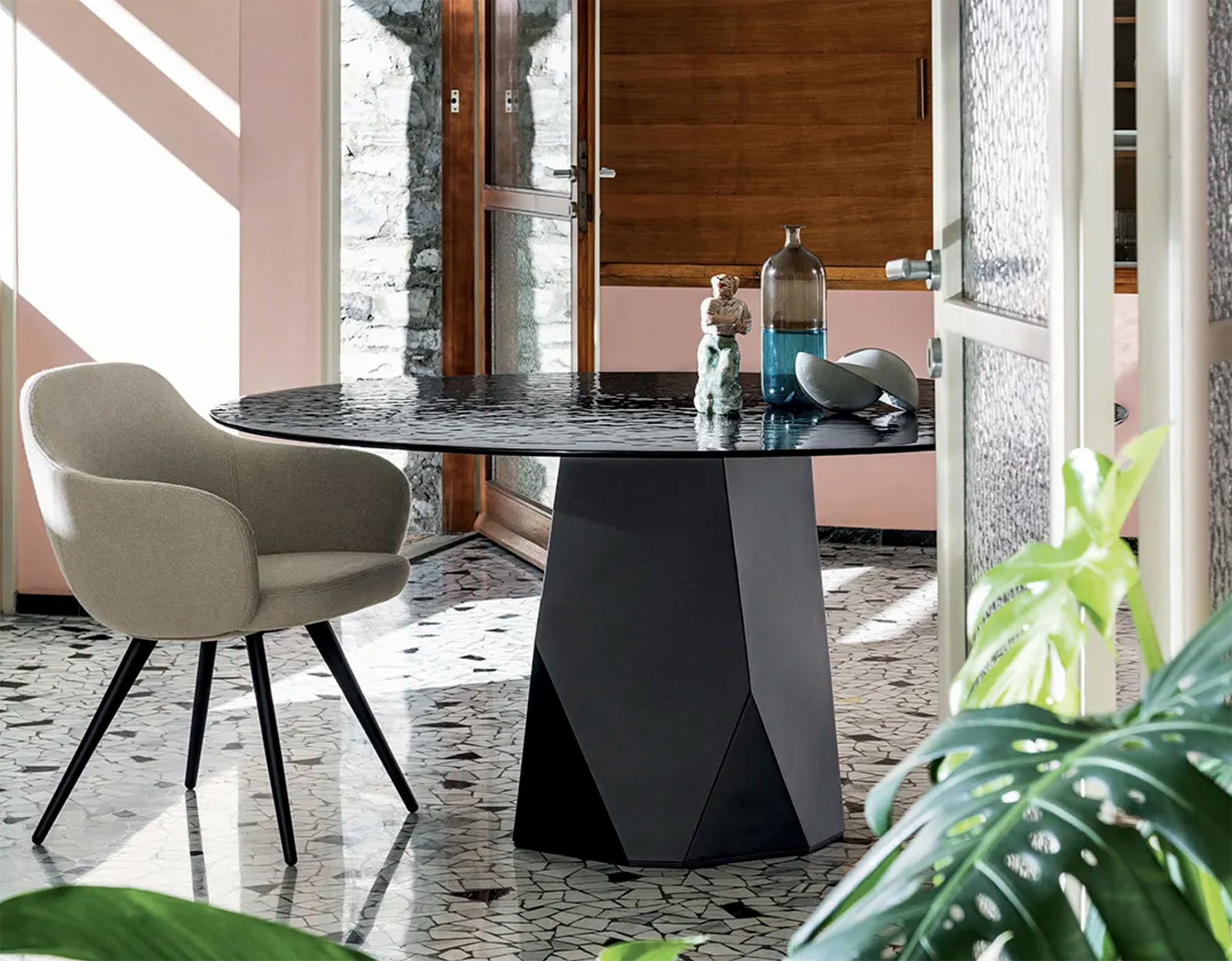 Il tavolo Deod di Sovet Italia è un elemento d’arredo dal forte carattere scultoreo, pensato per diventare il protagonista della zona living o dining. Il suo design contemporaneo, firmato da Gianluigi Landoni, si ispira alle forme naturali e irregolari delle rocce dolomitiche, reinterpretate in chiave moderna attraverso una base geometrica e dinamica.