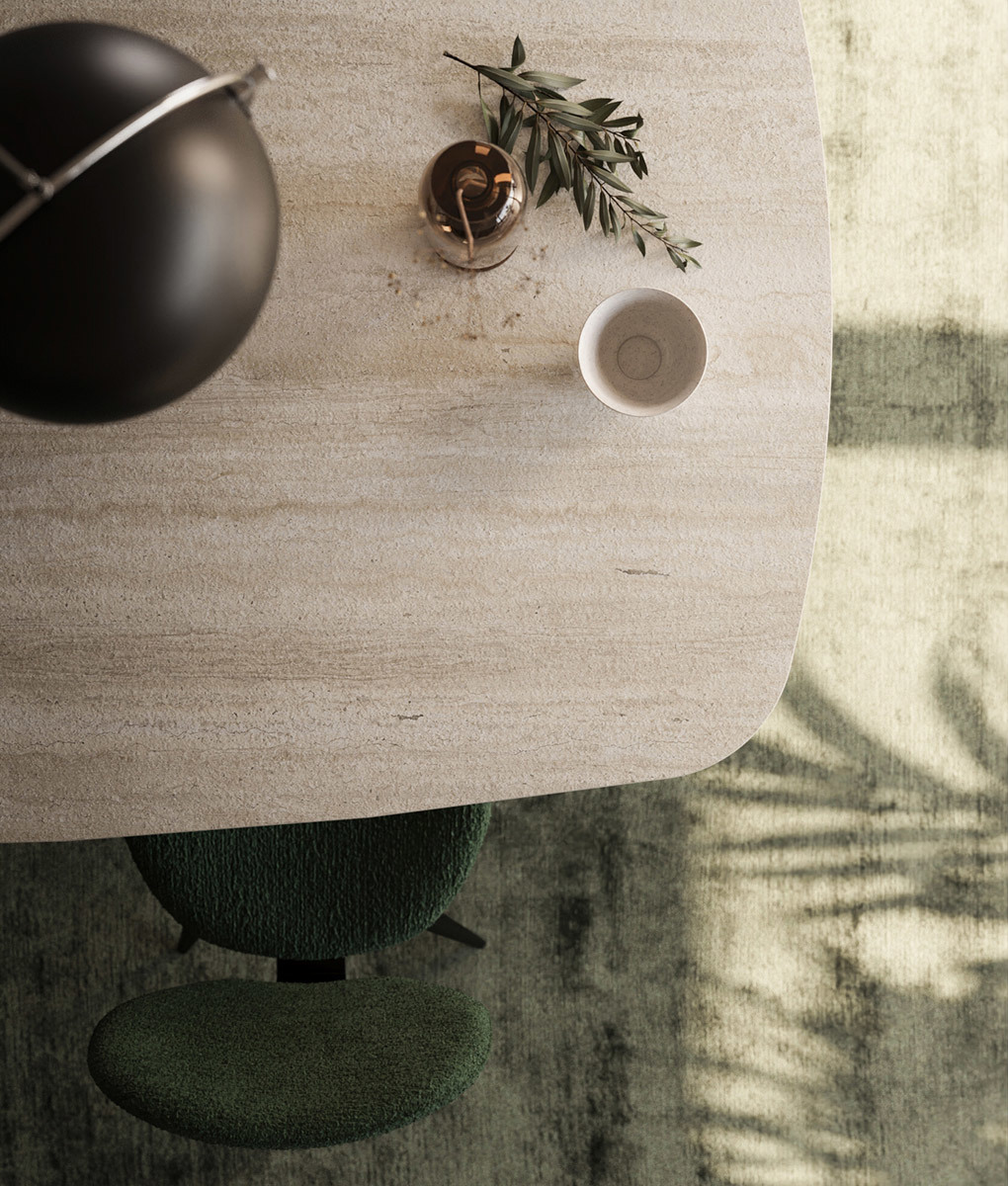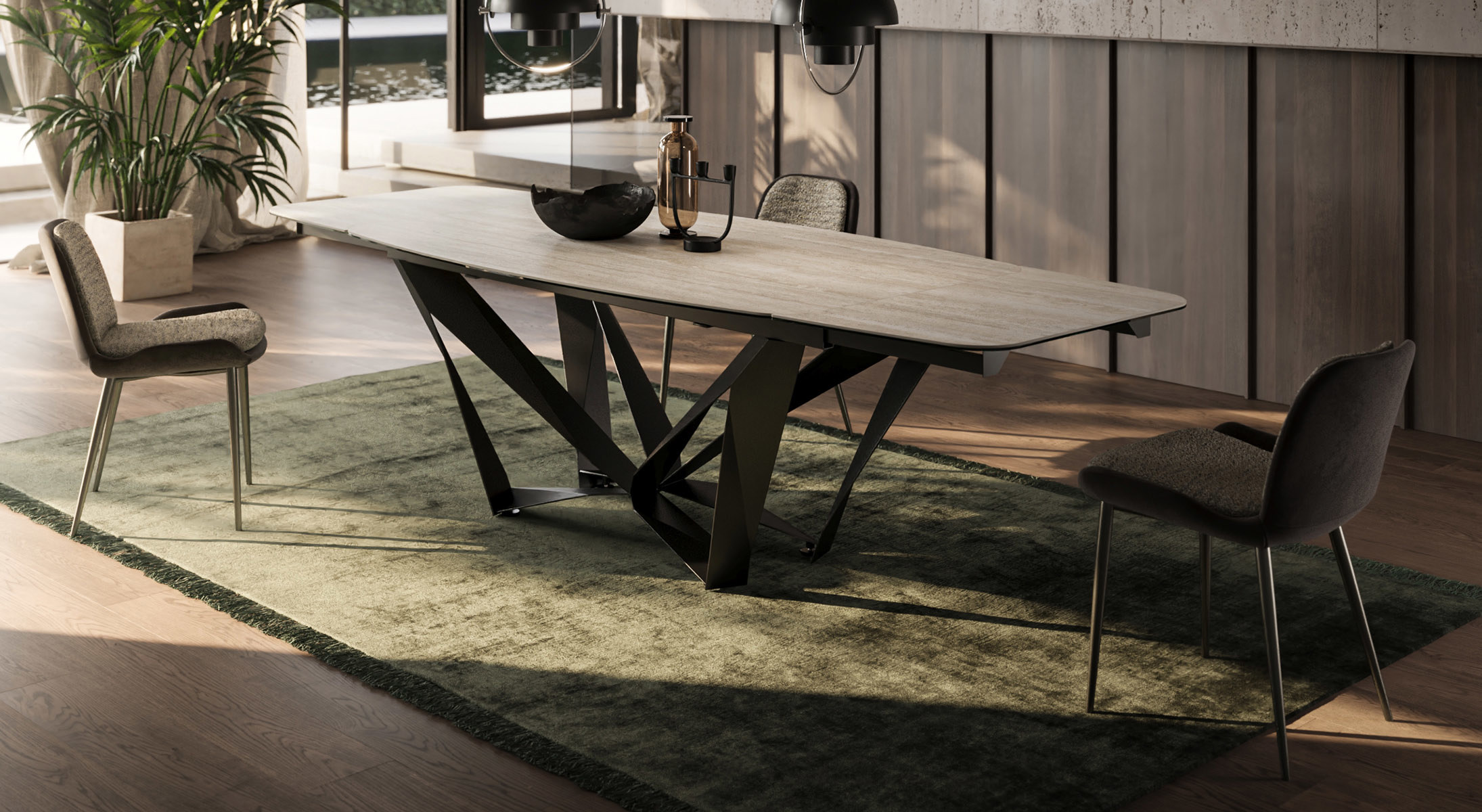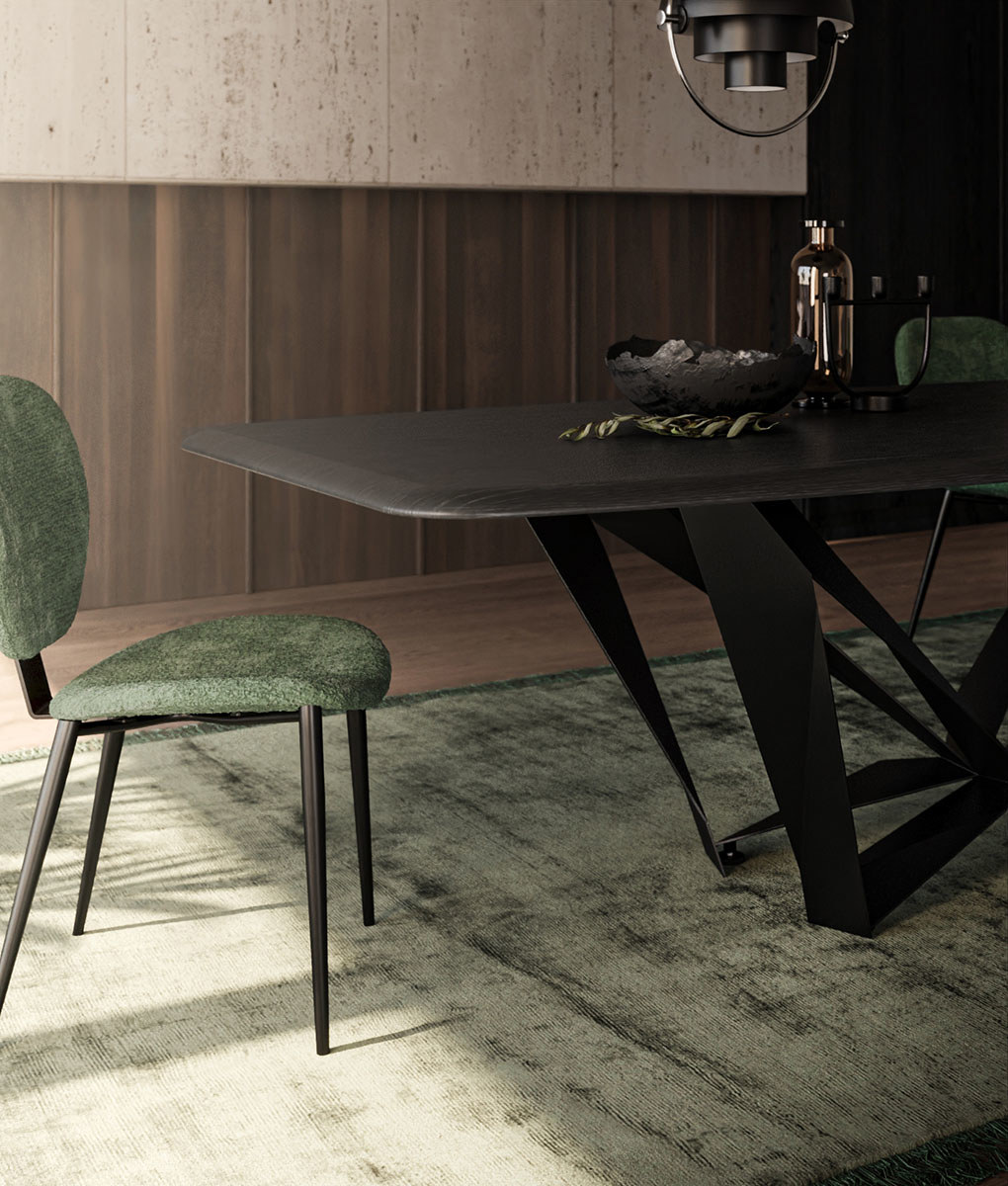 Il piano, disponibile in vetro, ceramica o materico può essere personalizzato in diverse finiture per adattarsi perfettamente allo stile del tuo soggiorno o della sala da pranzo. Ogni dettaglio è curato con precisione, per offrirti un tavolo solido, elegante e senza tempo.
