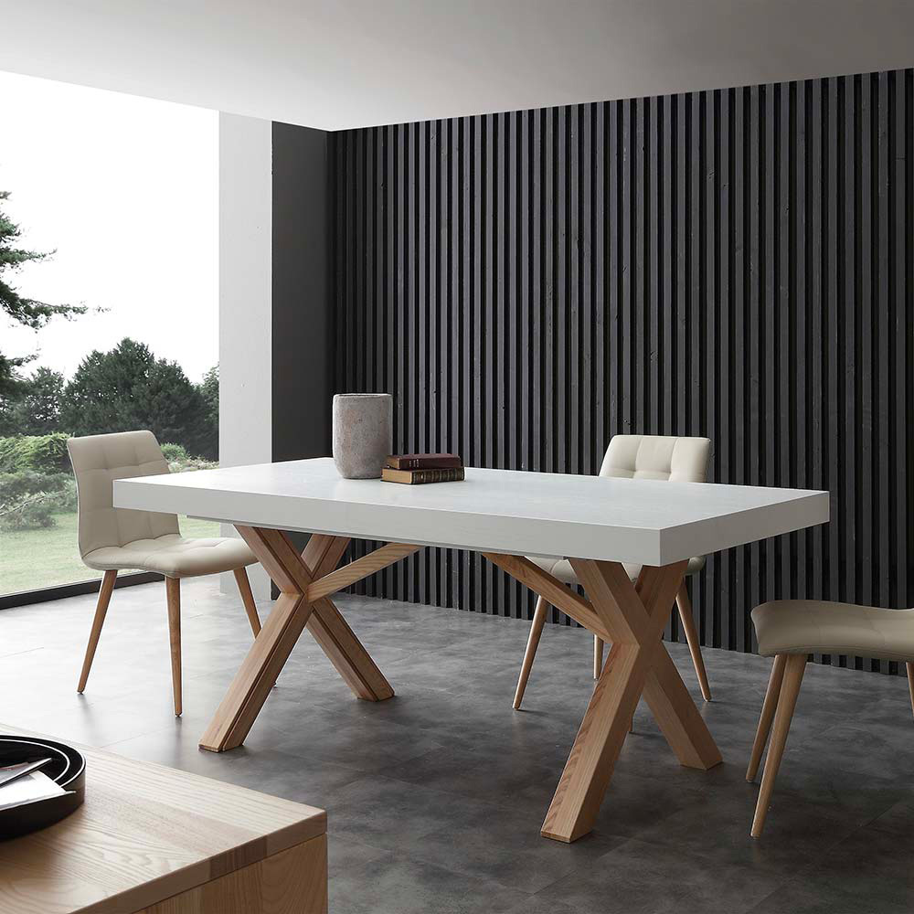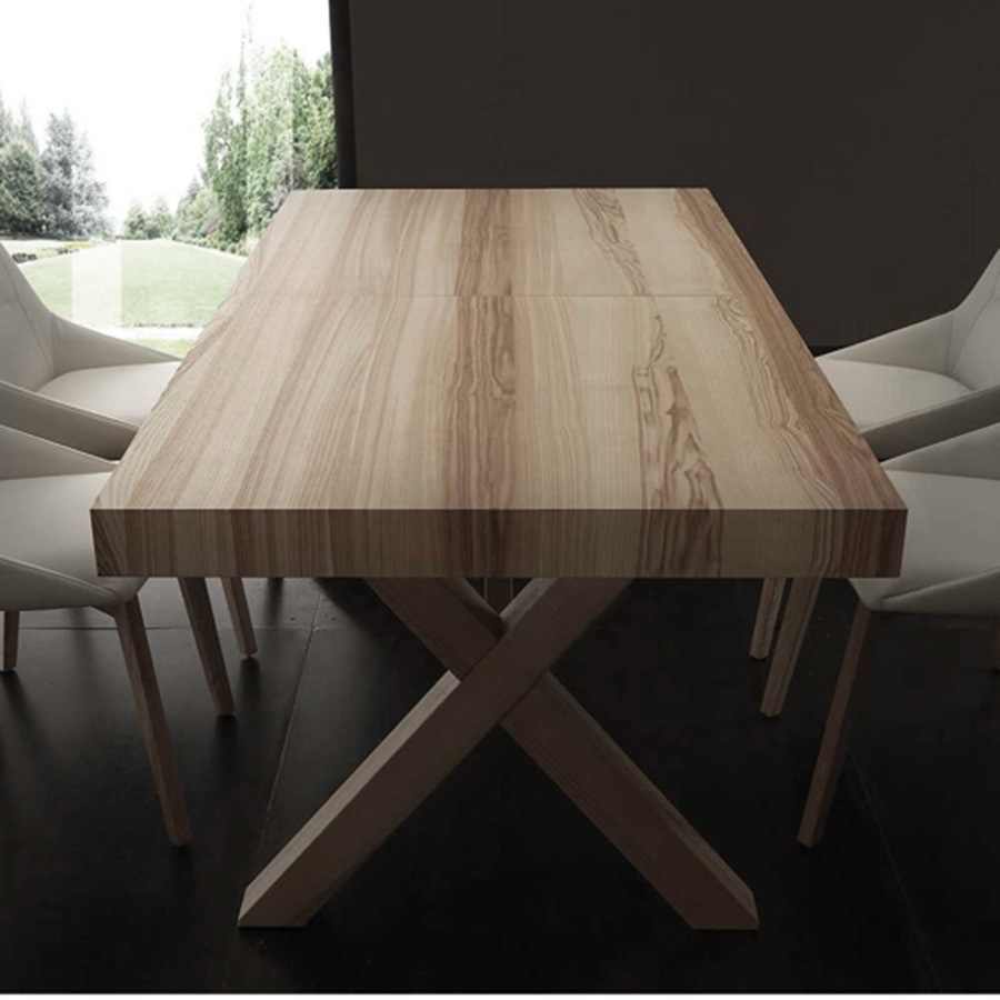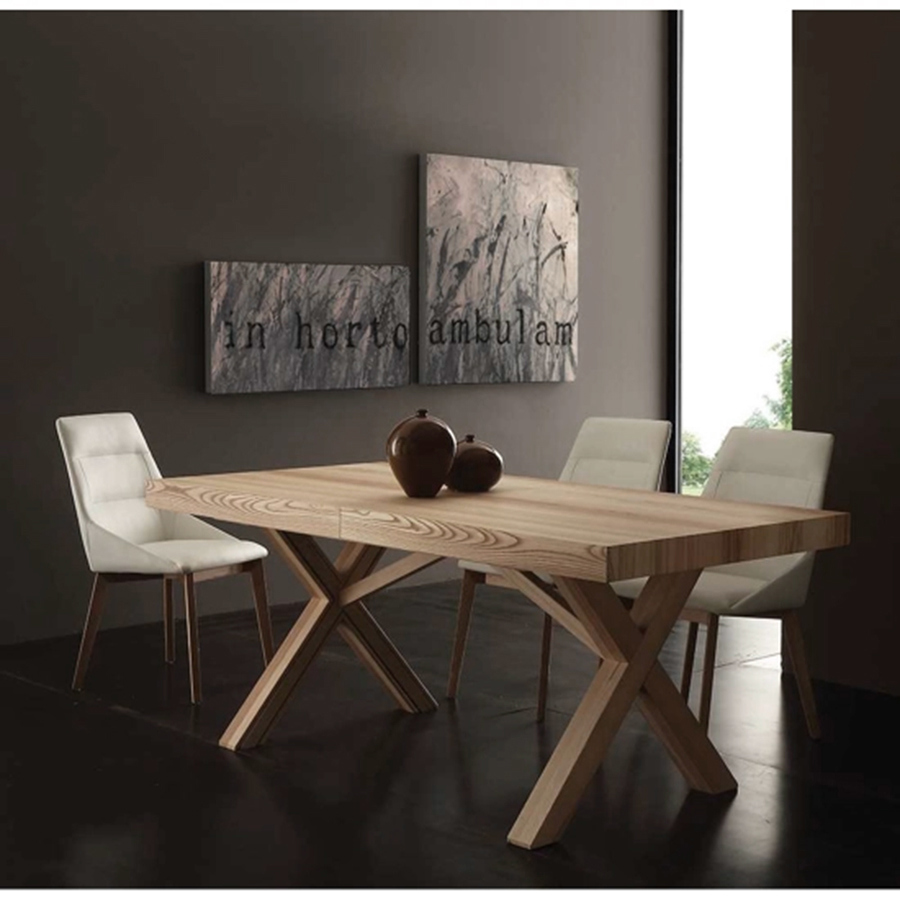 Leonardo è un tavolo dal design di impatto arricchito dal sapore naturale del legno di frassino.