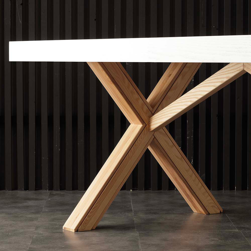 Piano e allunghe in lastre di frassino massellato con incastri perfetti.