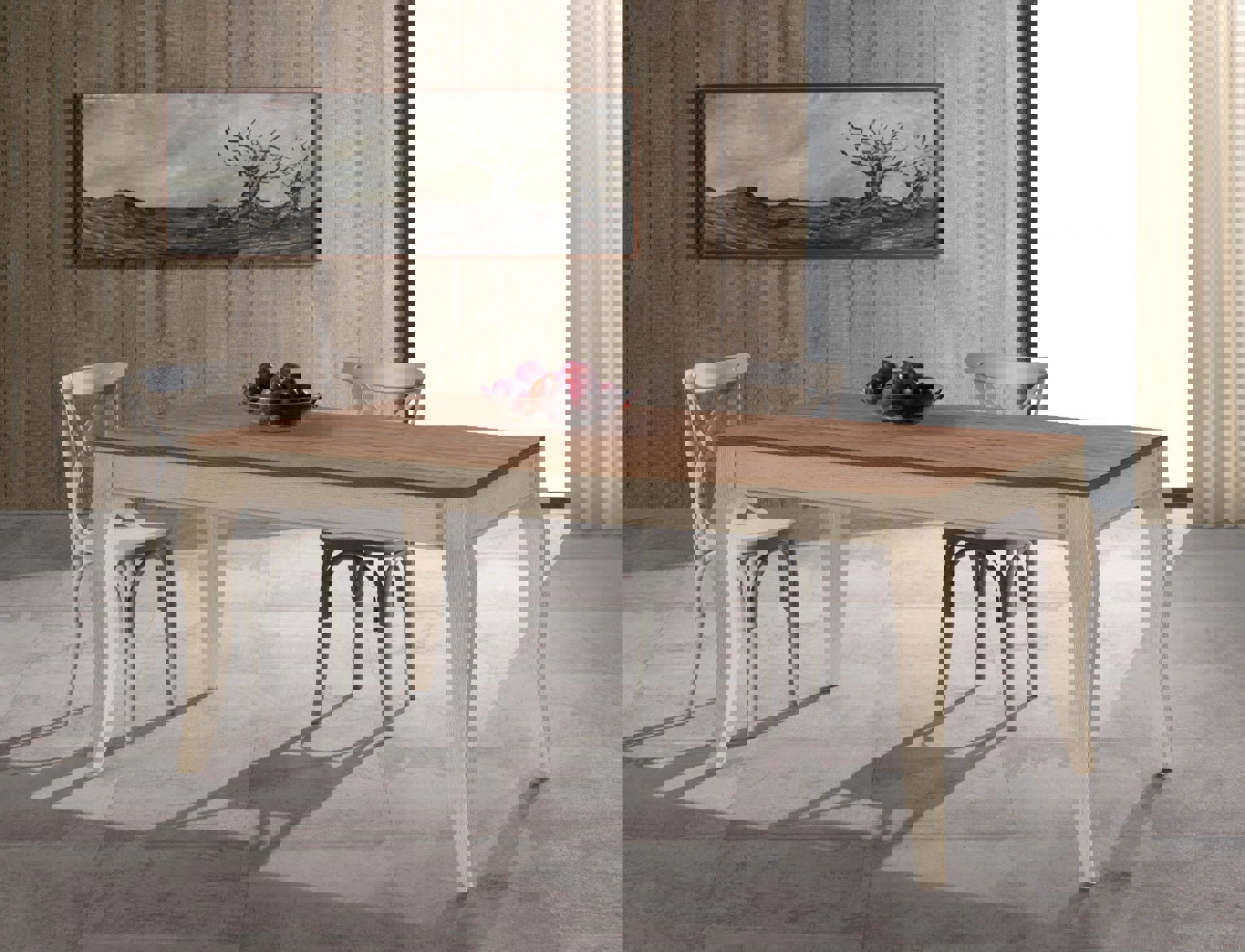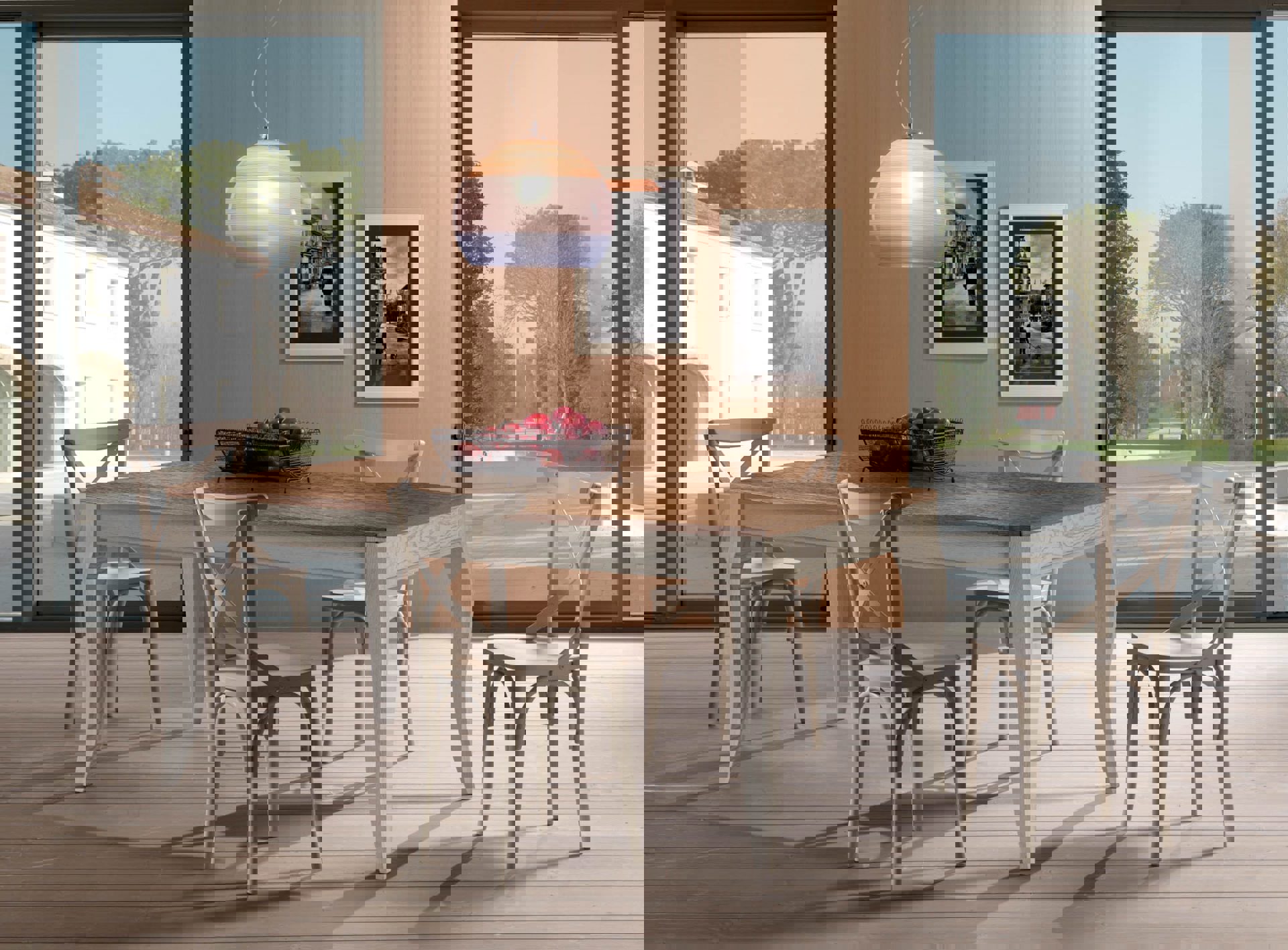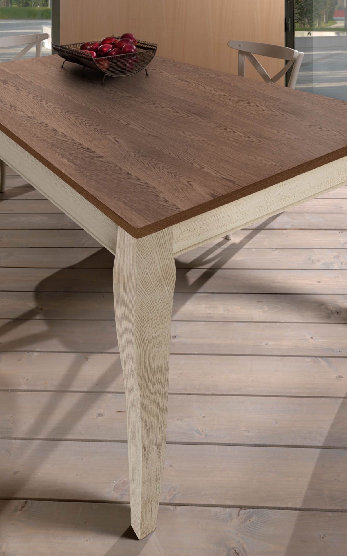 Tavolo fisso classico realizzato con piano impiallacciato su truciolare di pioppo.
