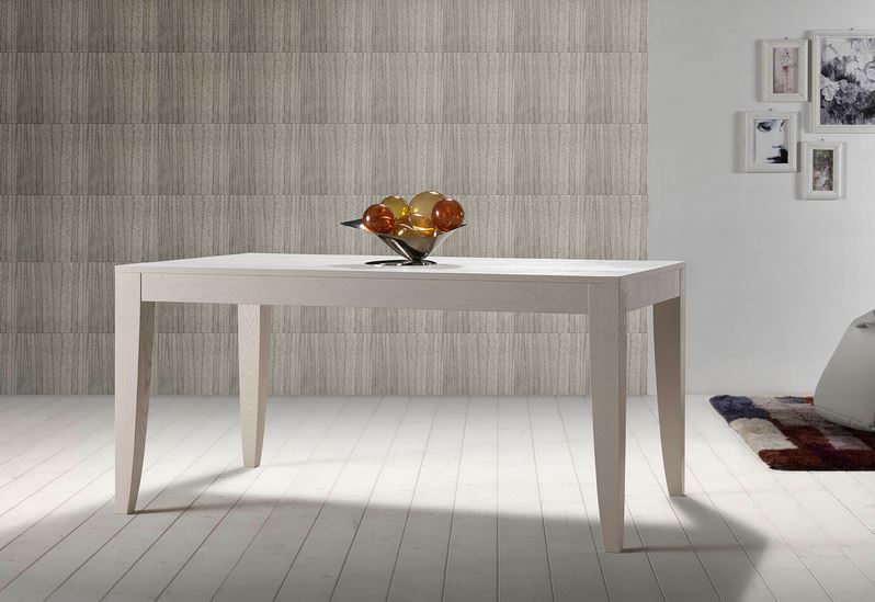 Tavolo fisso classico realizzato con piano impiallacciato su truciolare di pioppo
