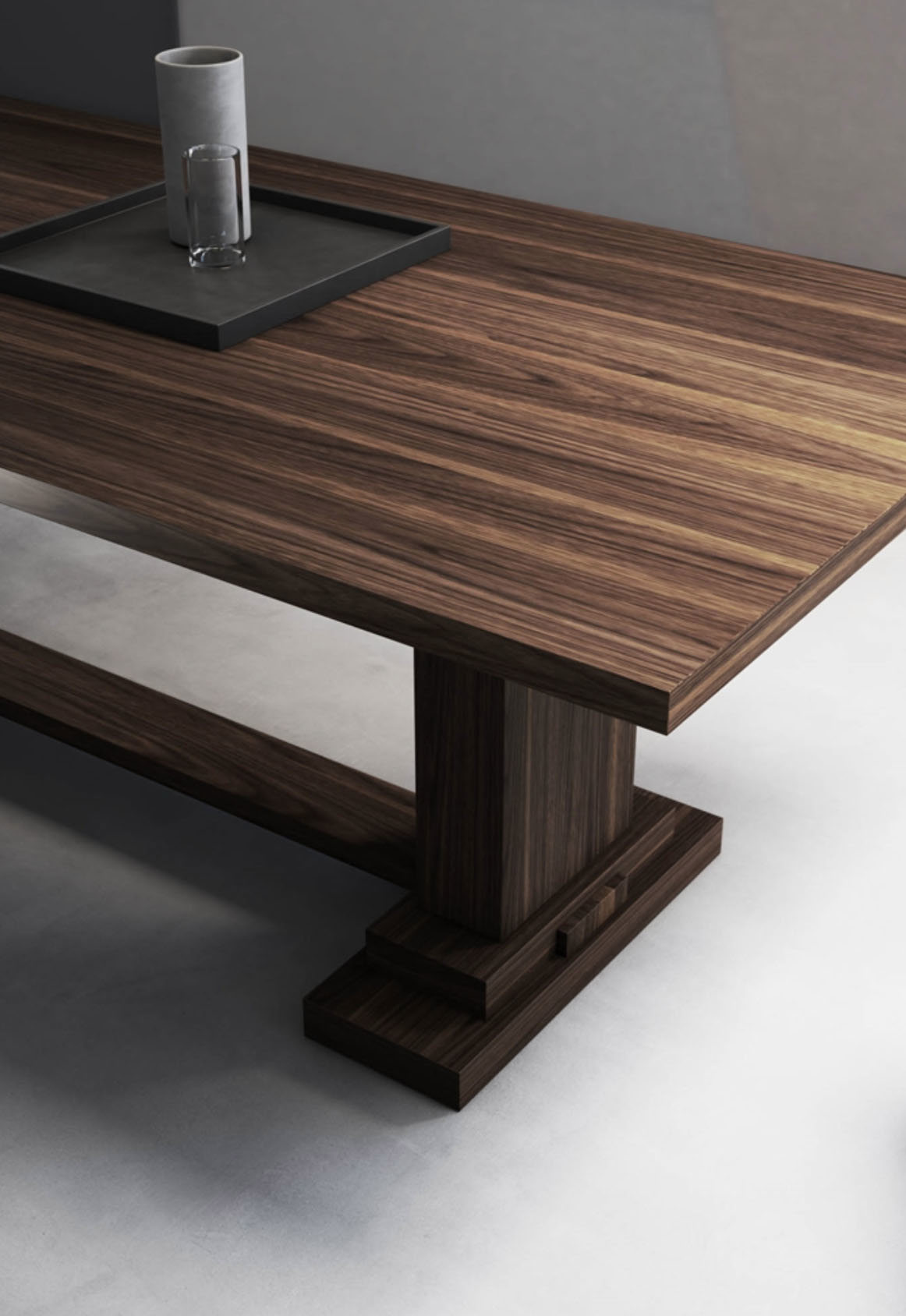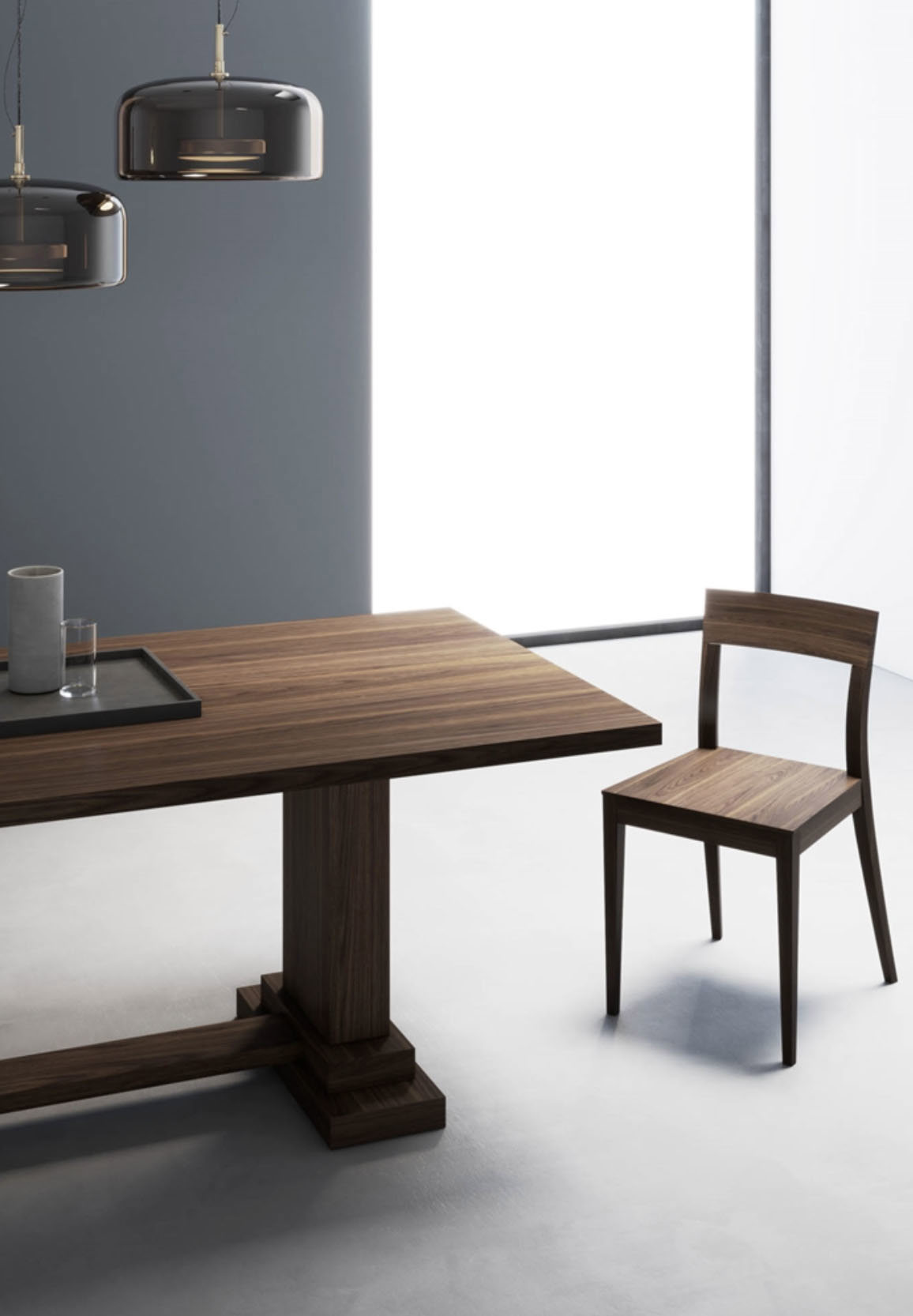 Tavolo fisso classico realizzato con piano e struttura in legno con gamboni a balaustra