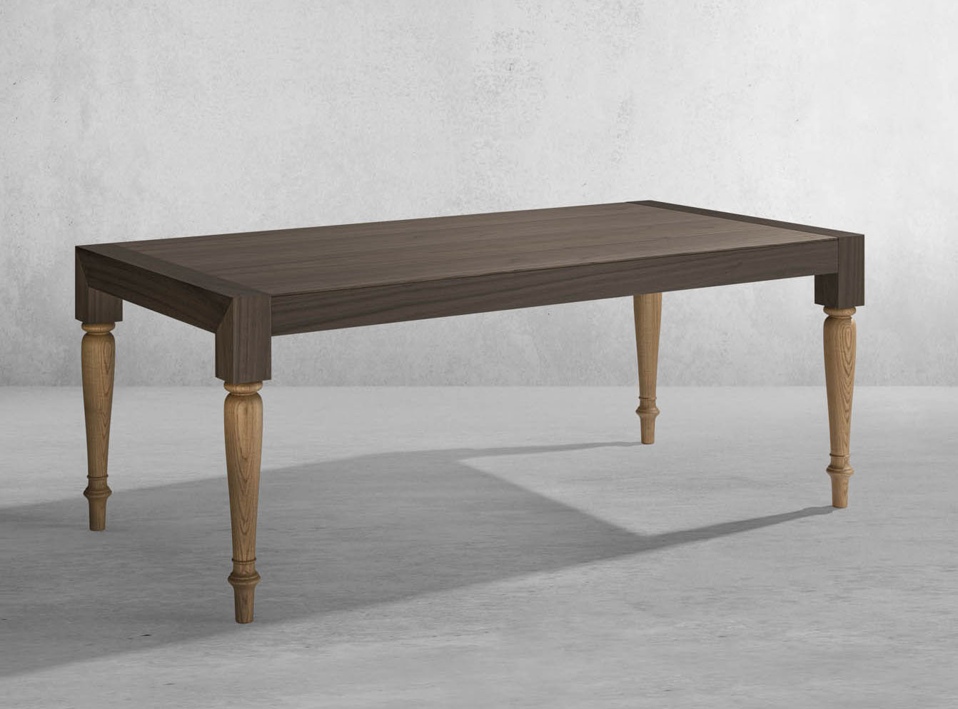 Tavolo fisso con piano impiallacciato su truciolare di pioppo