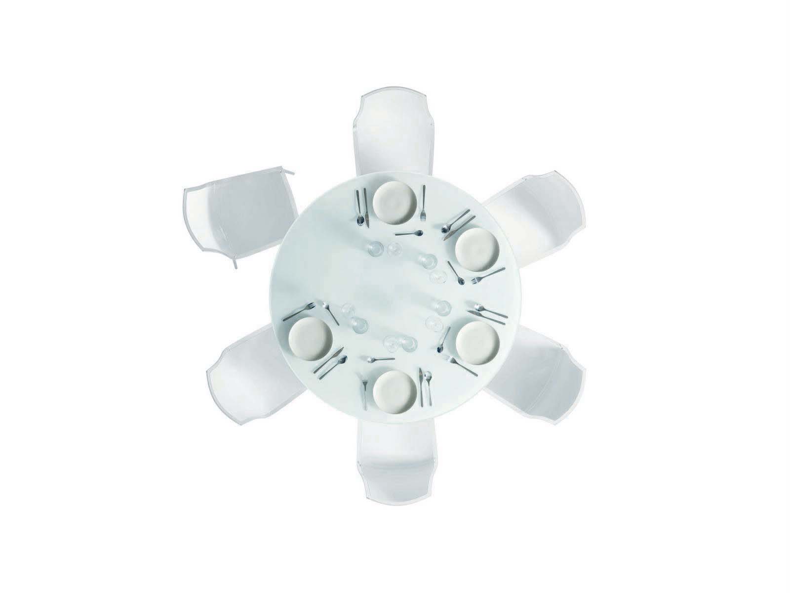 Giro tavolo rotondo allungabile, dalla forma vivace, nato per dare brio all'ambiente che lo ospita.