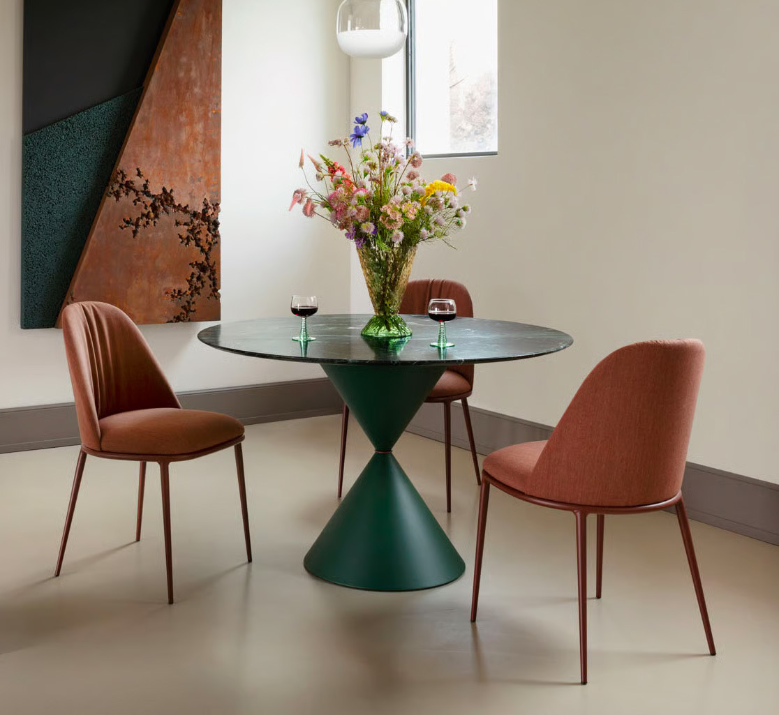 Ideale per living moderni, zone dining e spazi contract di prestigio, il tavolo Clessidra valorizza ogni ambiente con un tocco di raffinatezza contemporanea e un’equilibrata armonia di forme.