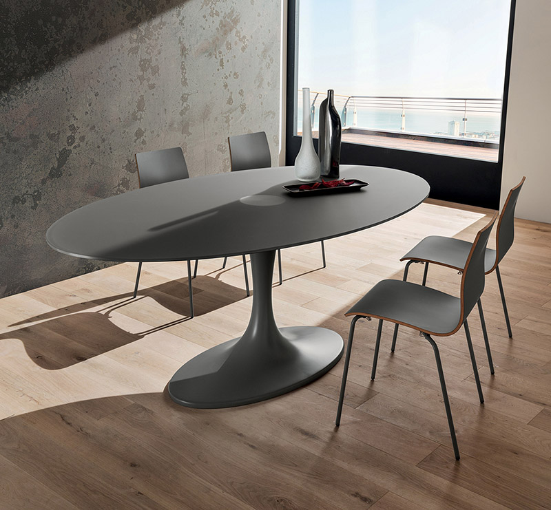 Il basamento del tavolo Ruud è in mineral marmo ovvero un'impasto di polveri marmoree con resine poliestere.