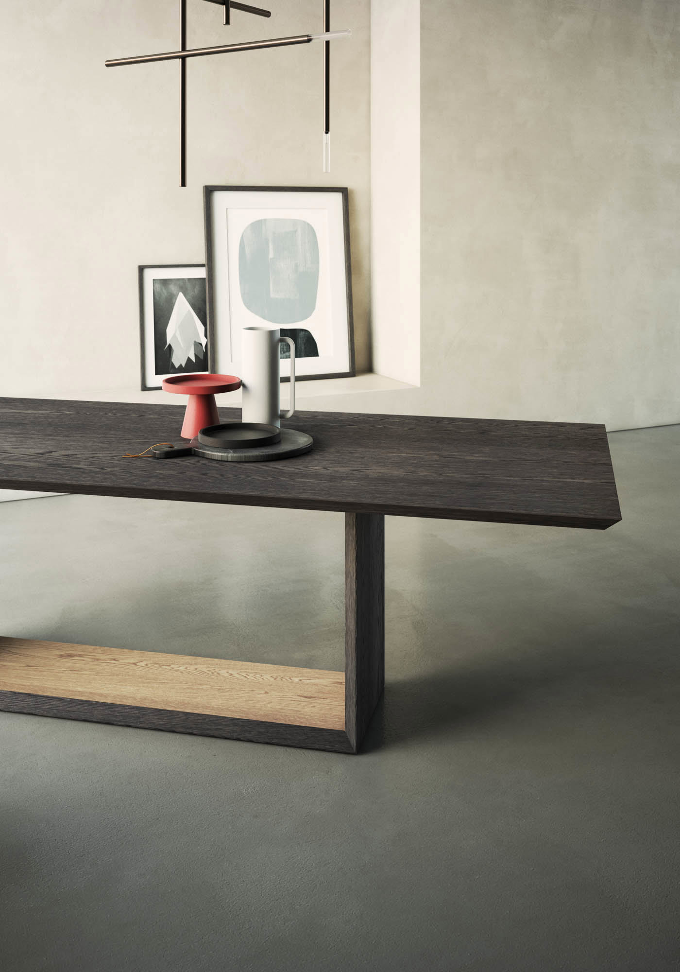 Tavolo Eclipse con piano bisellato impiallacciato su truciolare di pioppo