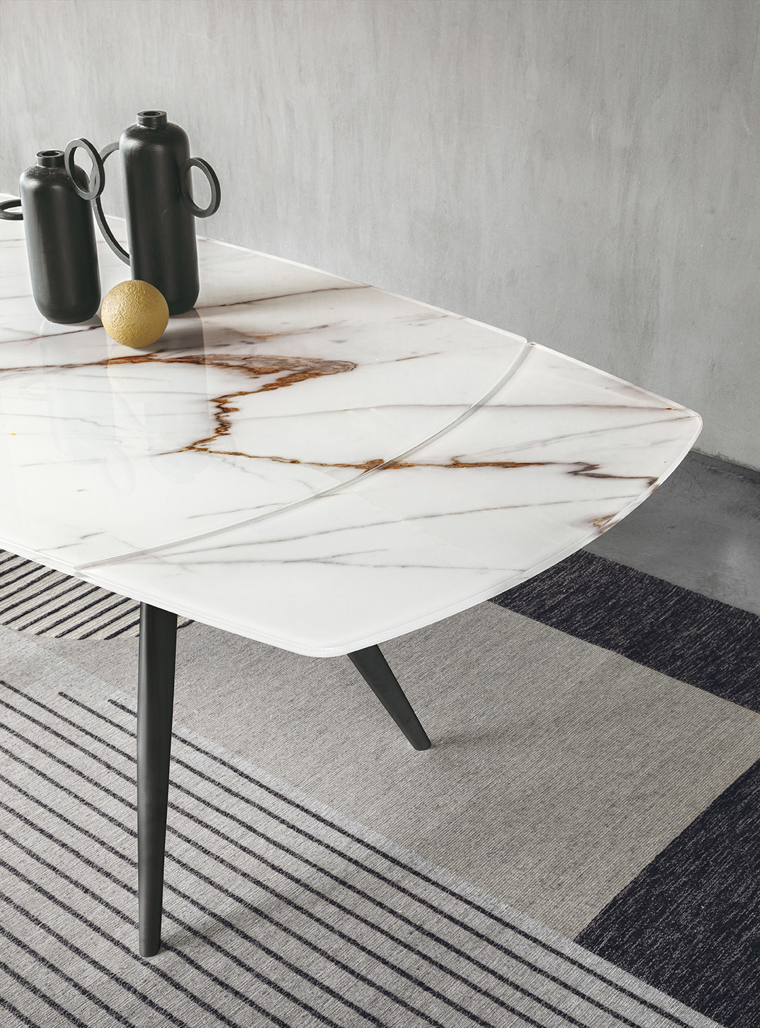 Il tavolo Elica di Sedit rappresenta un perfetto equilibrio tra design innovativo e funzionalità, ideale per ambienti living moderni e raffinati.