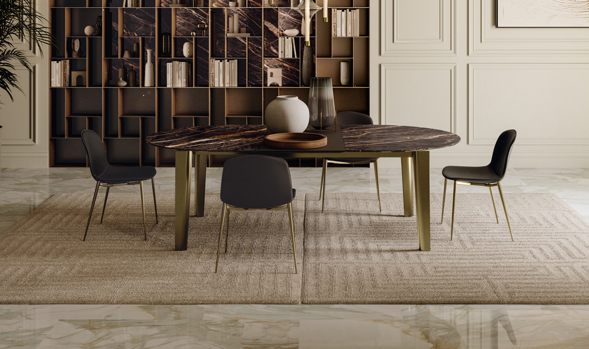 A seconda delle diverse finiture, il tavolo Etro può essere inserito in vari ambienti, sempre secondo le esigenze di impiego