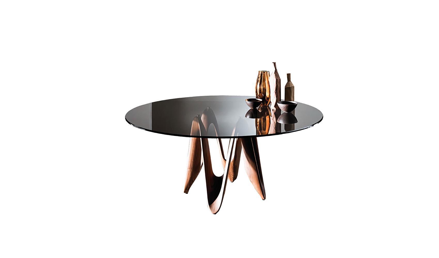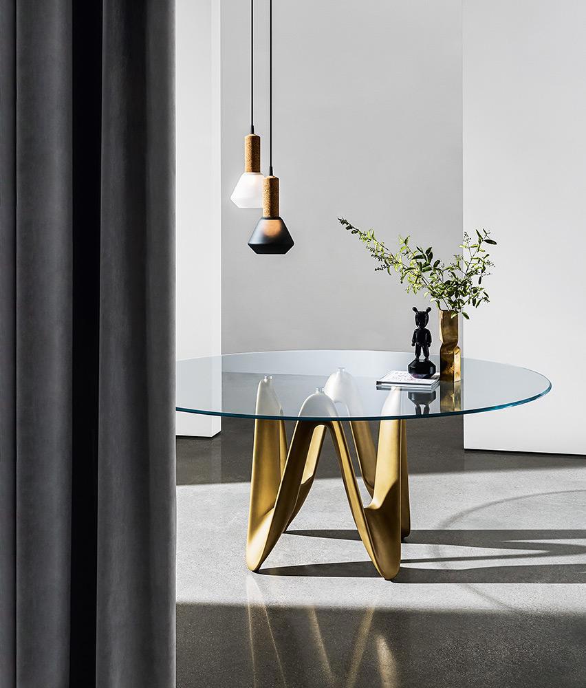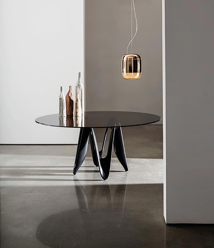 Il tavolo Lambda di Sovet è un’icona del design contemporaneo, caratterizzato da una forte identità scultorea e da un’eleganza fluida. Il suo elemento distintivo è la base sinuosa, ispirata alla forma dinamica della lettera greca “λ”, che crea un effetto visivo leggero ma al tempo stesso strutturalmente solido.