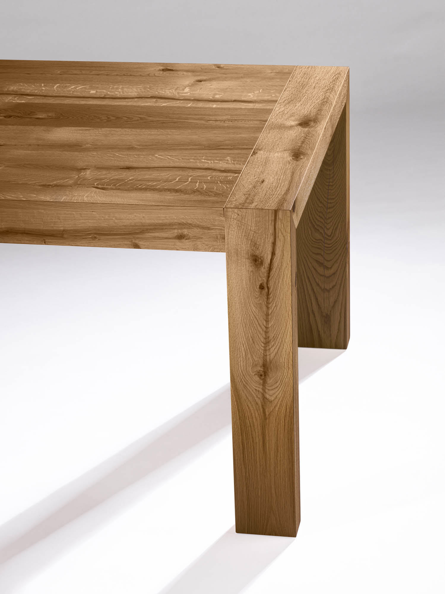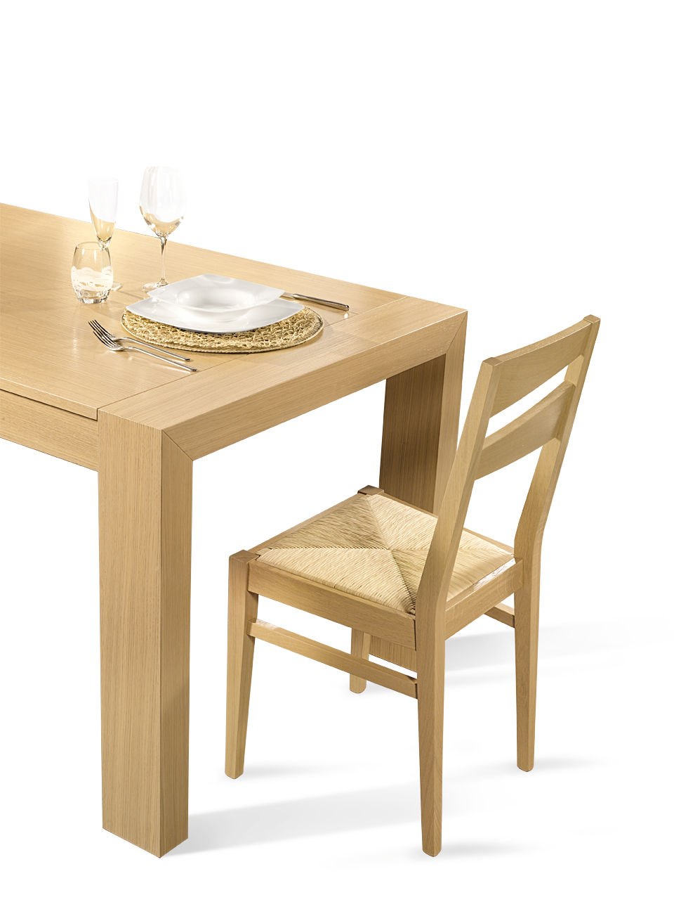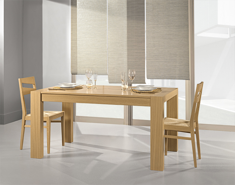 Tavolo fisso impiallacciato su truciolare di pioppo bordo dritto.